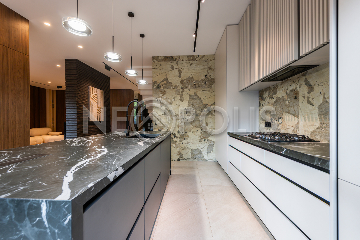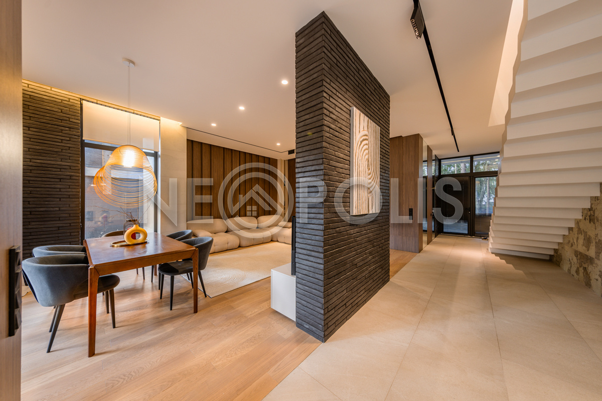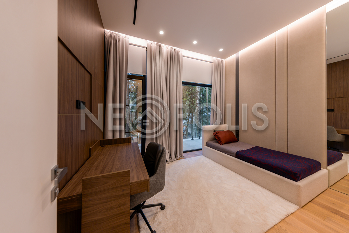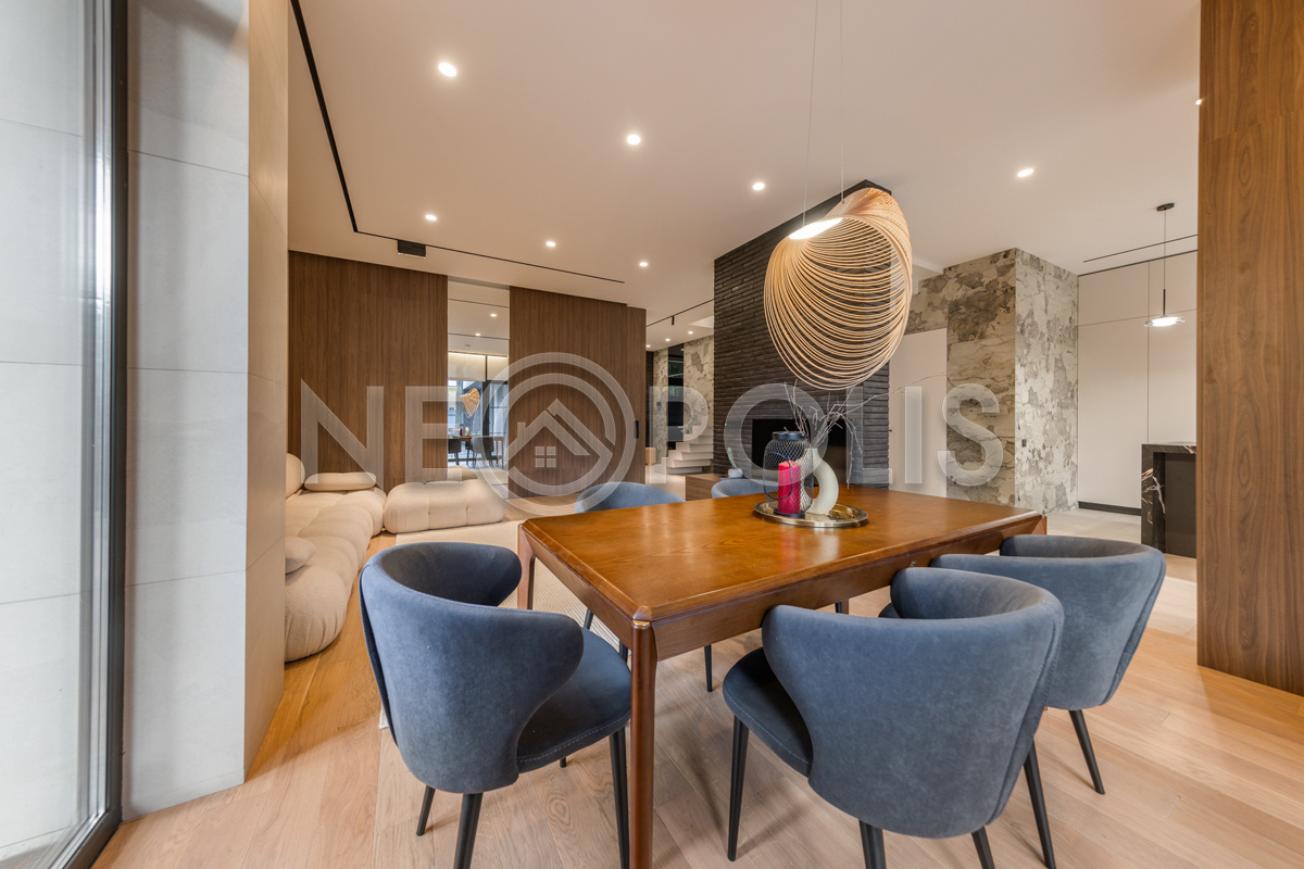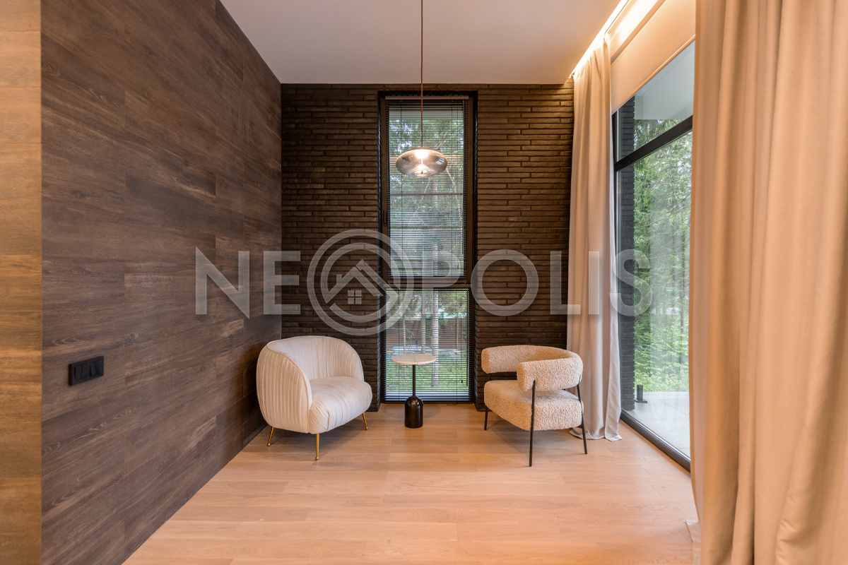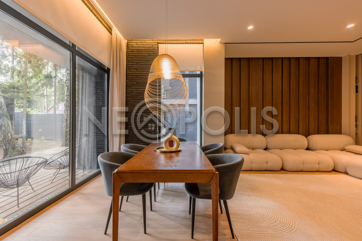 Объект расположен в комфортном для проживания поселке, на благоустроенном участке с видом на лес и ландшафтным дизайном. Полностью готов к круглогодичному проживанию. Отделка выполнена в классическом стиле из дорогих натуральных материалов.