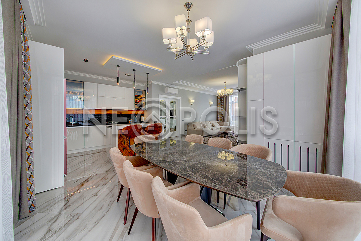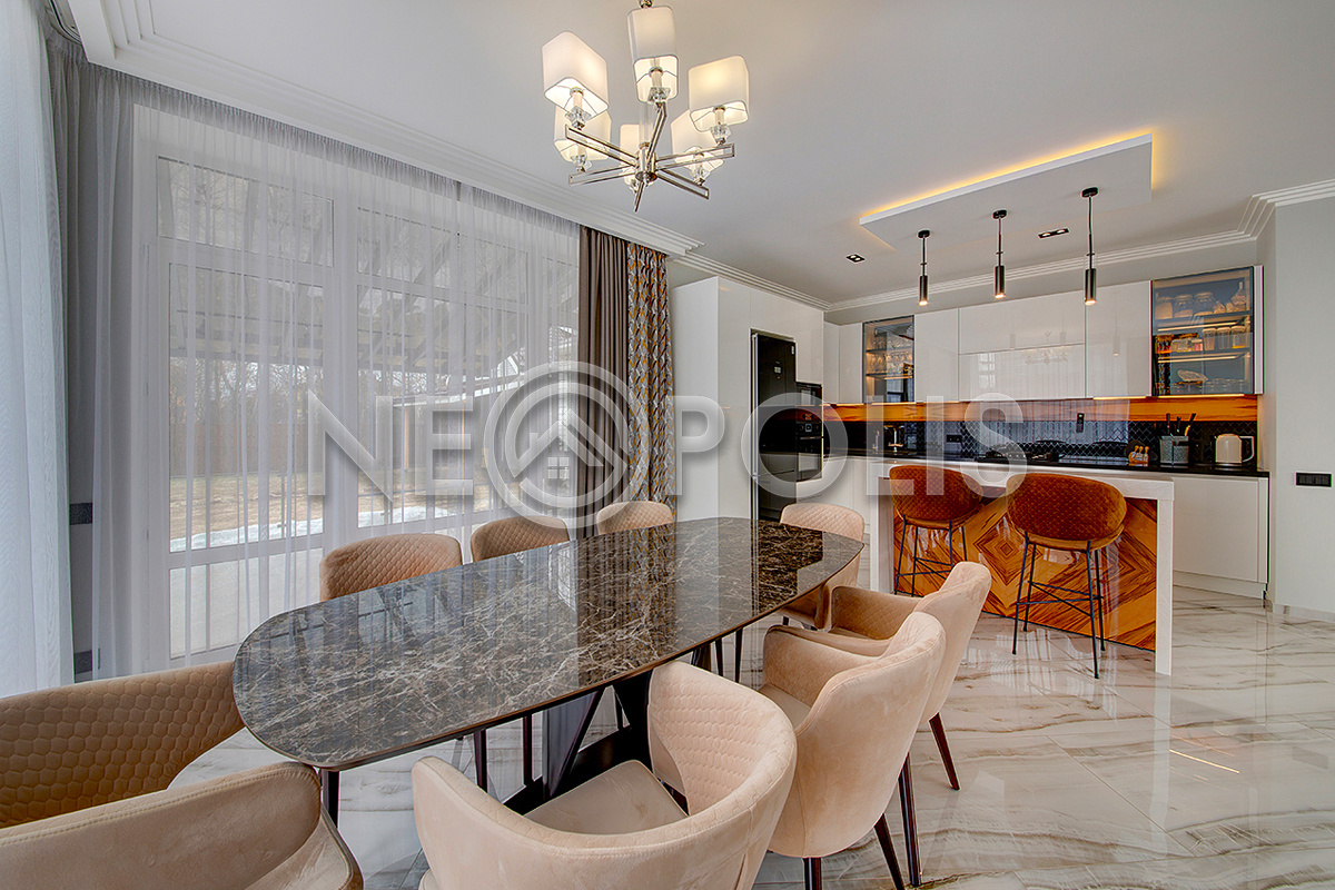 Объект расположен в комфортном для проживания поселке, на благоустроенном участке с видом на лес и ландшафтным дизайном. Полностью готов к круглогодичному проживанию. Отделка выполнена в классическом стиле из дорогих натуральных материалов.