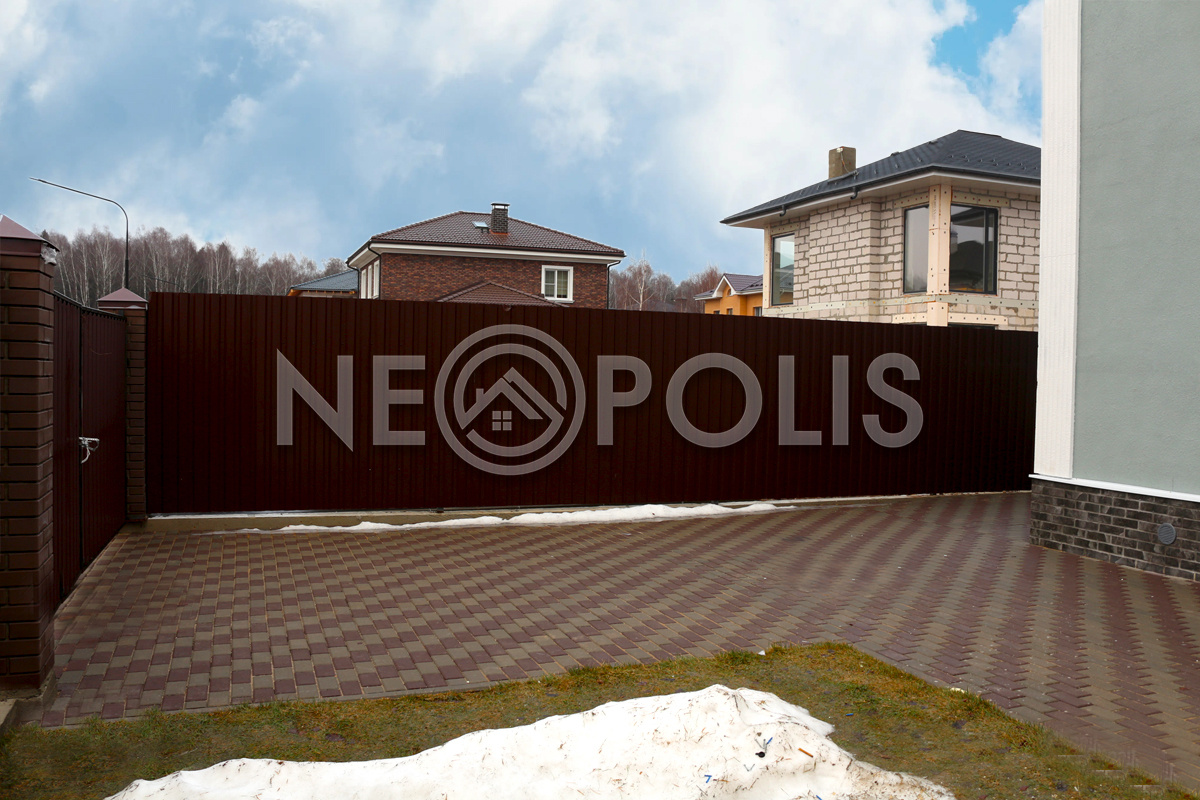 Въезд на территорию через автоматические откатные ворота.