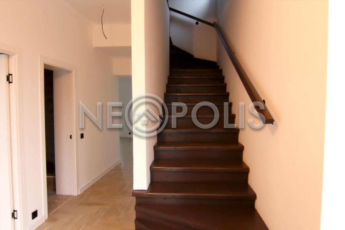 - Лестница: монолитное железобетонное основание, ступени отделаны деревом