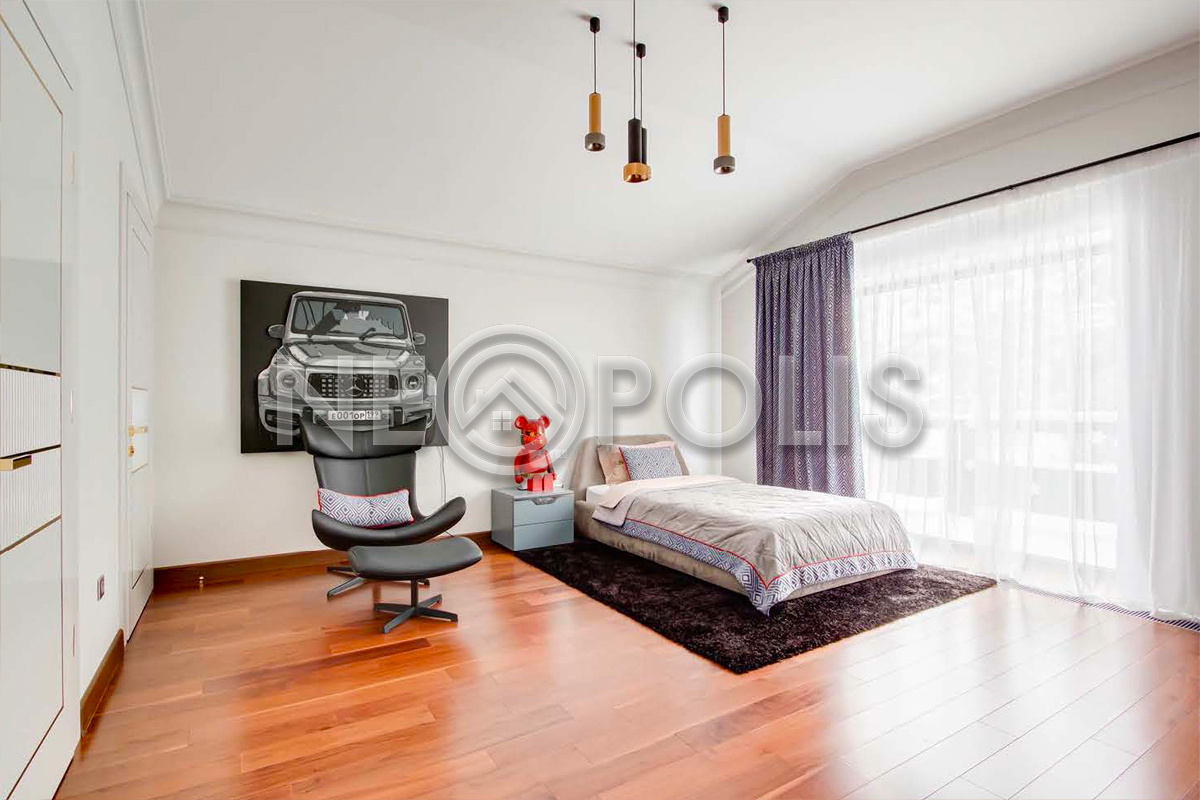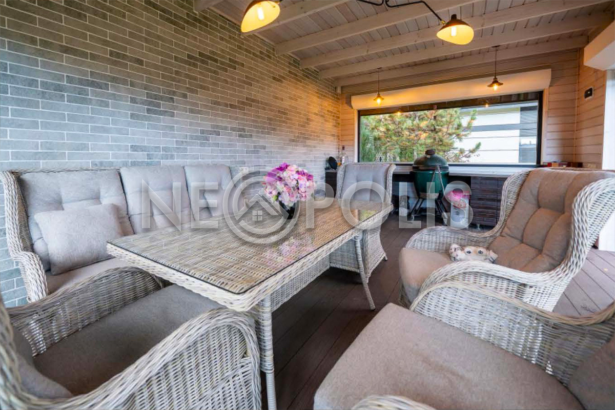 Объект расположен в комфортном для проживания поселке, на благоустроенном участке с видом на лес и ландшафтным дизайном. Полностью готов к круглогодичному проживанию. Отделка выполнена в классическом стиле из дорогих натуральных материалов.