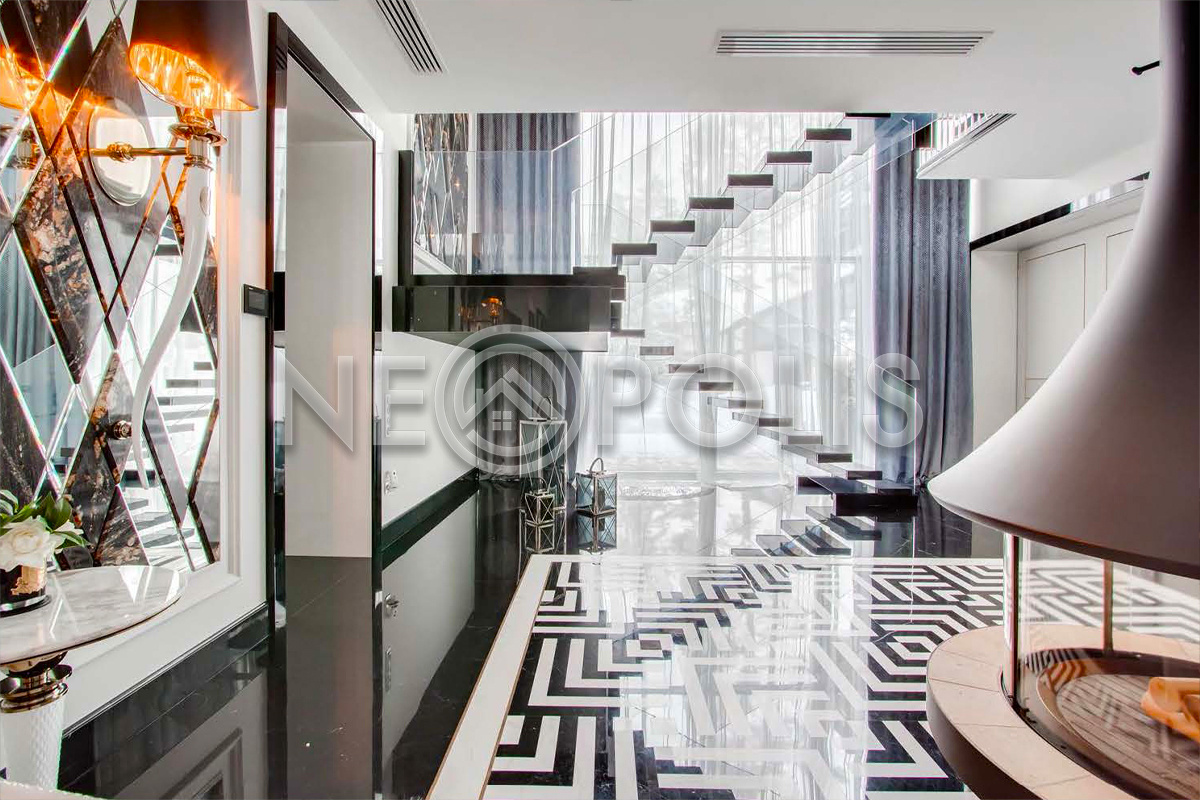 - 2 этаж:холл-галерея с библиотекой, четыре спальни с гардеробными и ванными комнатами.