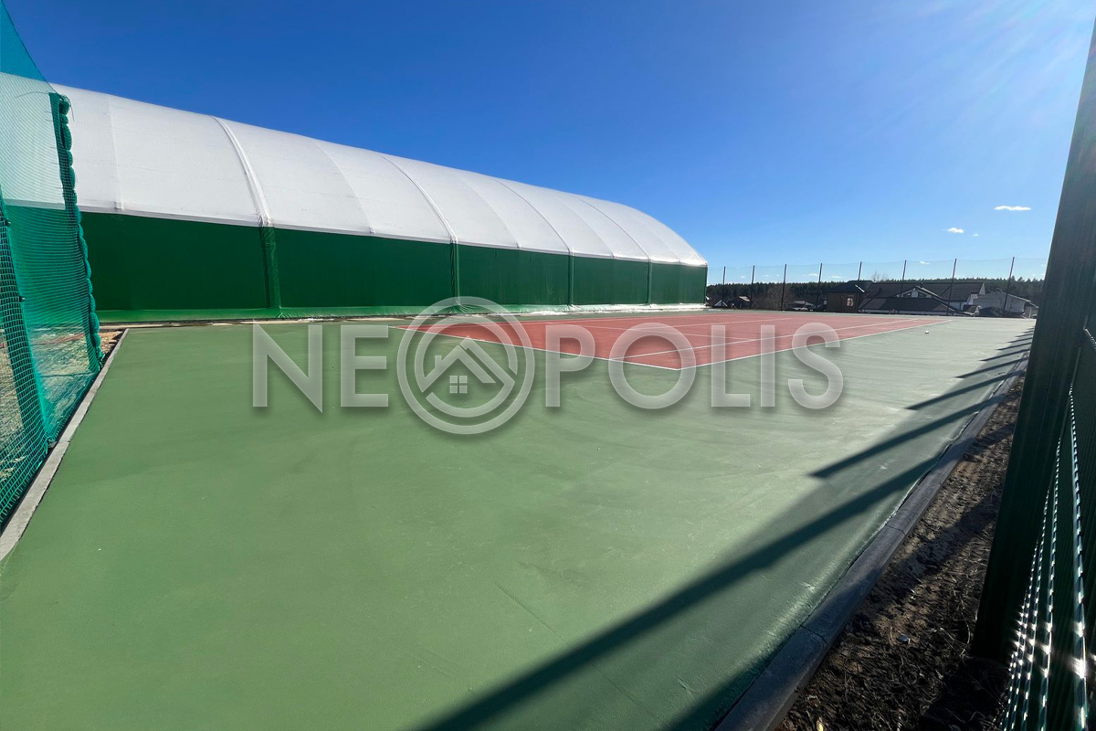 В поселке круглосуточная охрана, детская, спортивная площадки, прогулочная зона в лесу со своим родником, административное здание, магазин;
