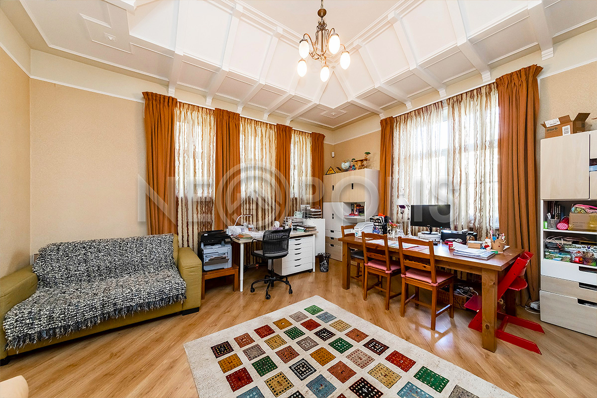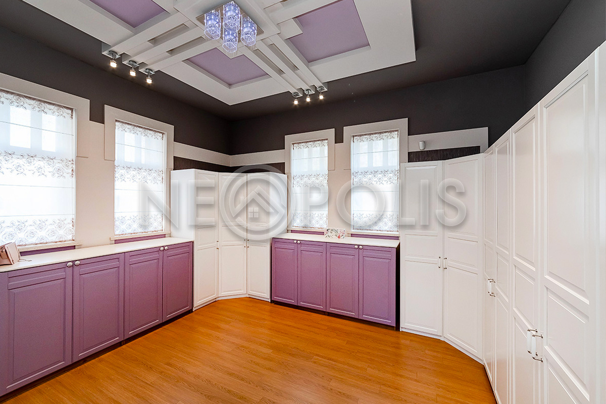- Мансарда:мастер спальня с ванной комнатой, кабинетом и двумя гардеробными.