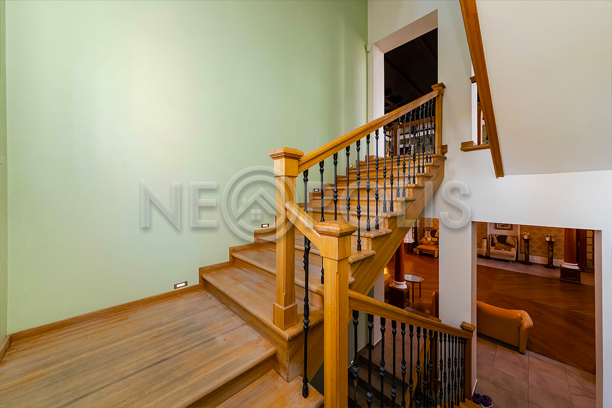 Объект расположен в комфортном для проживания поселке, на благоустроенном участке с видом на лес и ландшафтным дизайном. Полностью готов к круглогодичному проживанию. Отделка выполнена в классическом стиле из дорогих натуральных материалов.
