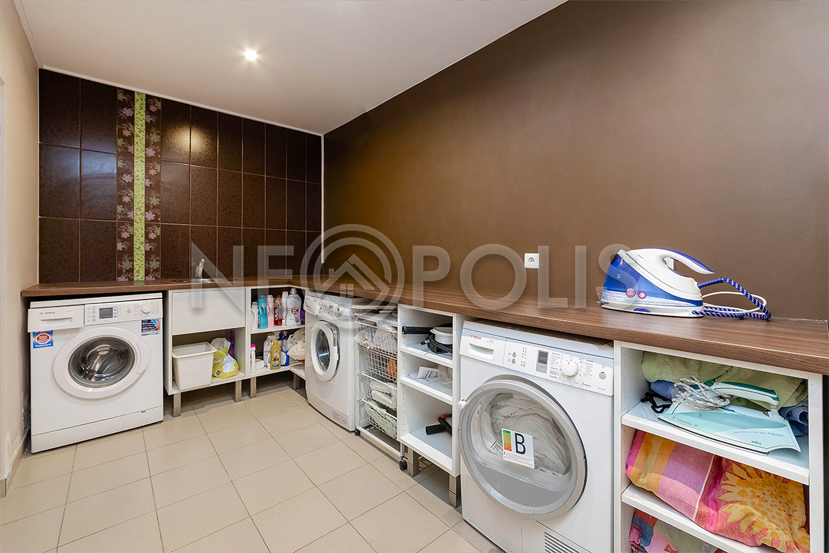 - Цоколь:холл, зона домашнего кинотеатра с баром, SPA зона: бассейн (50 кв.м.), сауна, комната отдыха, санузел с душевой; постирочная, технические помещения, котельная.