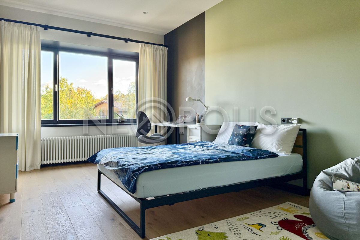 Объект расположен в комфортном для проживания поселке, на благоустроенном участке с видом на лес и ландшафтным дизайном. Полностью готов к круглогодичному проживанию. Отделка выполнена в классическом стиле из дорогих натуральных материалов.