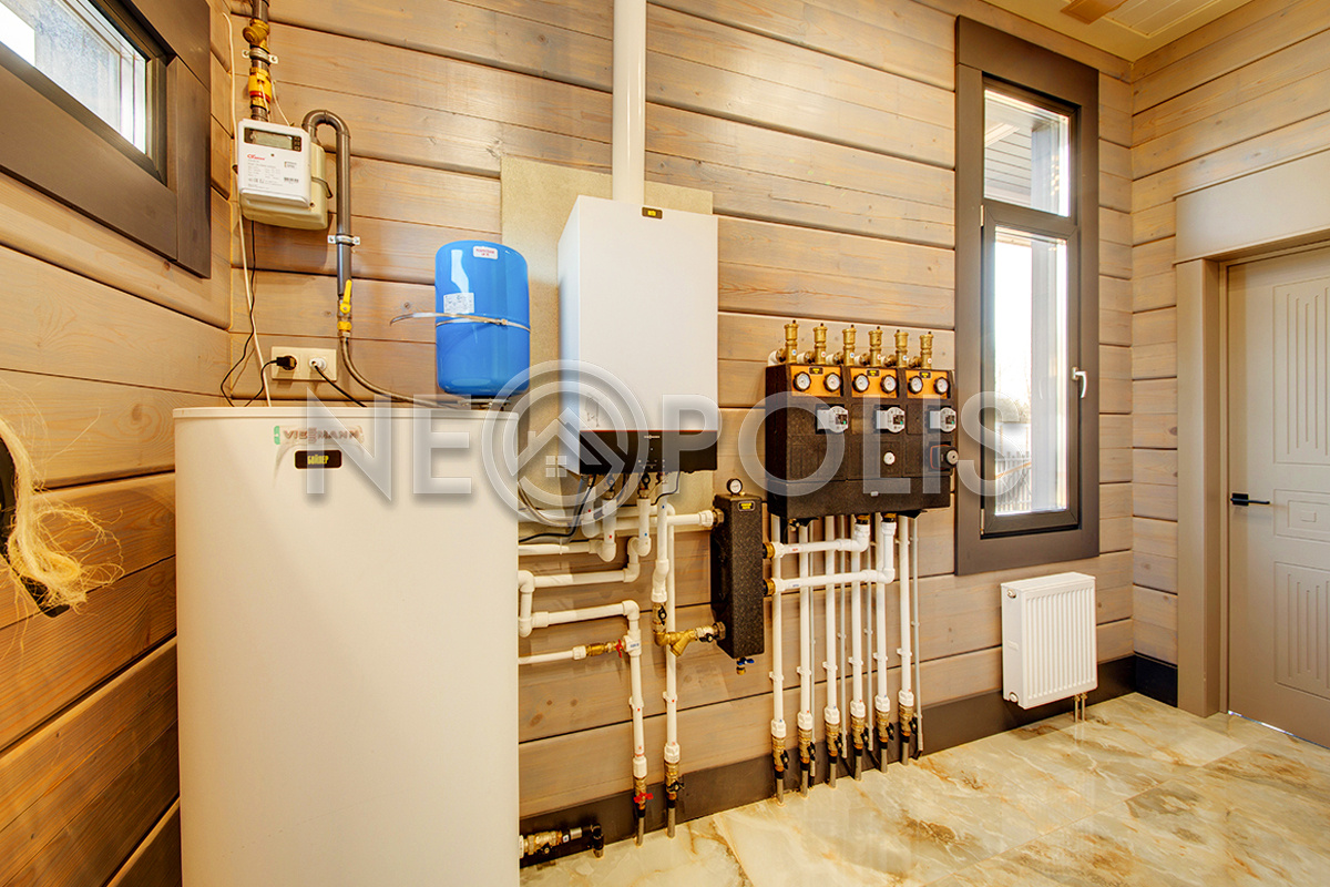 - 1 этаж:прихожая, холл, кухня-столовая, гостиная со вторым светом и выходом на террасу, мастер-спальня с гардеробной и ванной комнатой, санузел, постирочная, котельная.