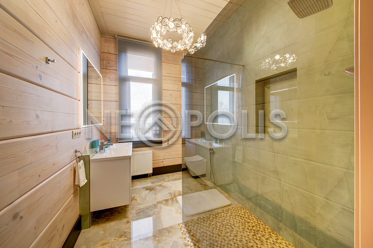 Объект расположен в комфортном для проживания поселке, на благоустроенном участке с видом на лес и ландшафтным дизайном. Полностью готов к круглогодичному проживанию. Отделка выполнена в классическом стиле из дорогих натуральных материалов.