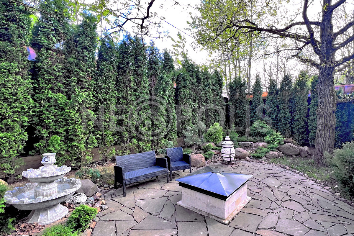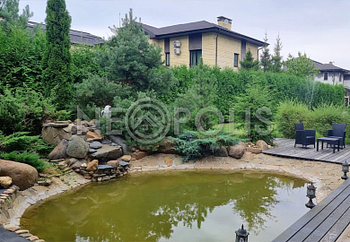 Просторный участок с ландшафтным дизайном: высажены более 300 растений (75 туй по периметру забора, 3 вековых дуба, голубые ели, горно-алтайские ели, сосны, можжевельники, цуги); облагорожены альпийские горки (крупные камни со множеством растений на разных уровнях).