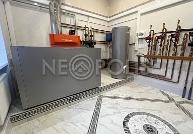 магистральный, установоен немецкий газовый котел Viessmann 120 кВт, установлено программное обеспечение на 3 контура; в гостевом доме - газовый котел Viessmann 22 кВт, прямоточный, двухконтурный