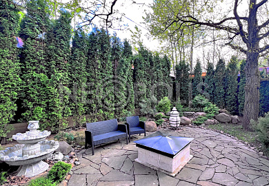 Зона патио (площадка с очагом, обложенным натуральным камнем).