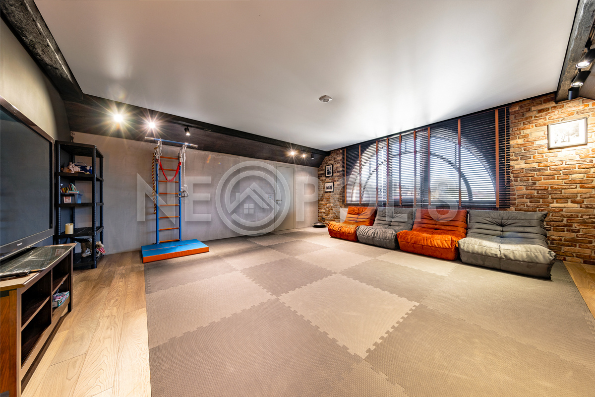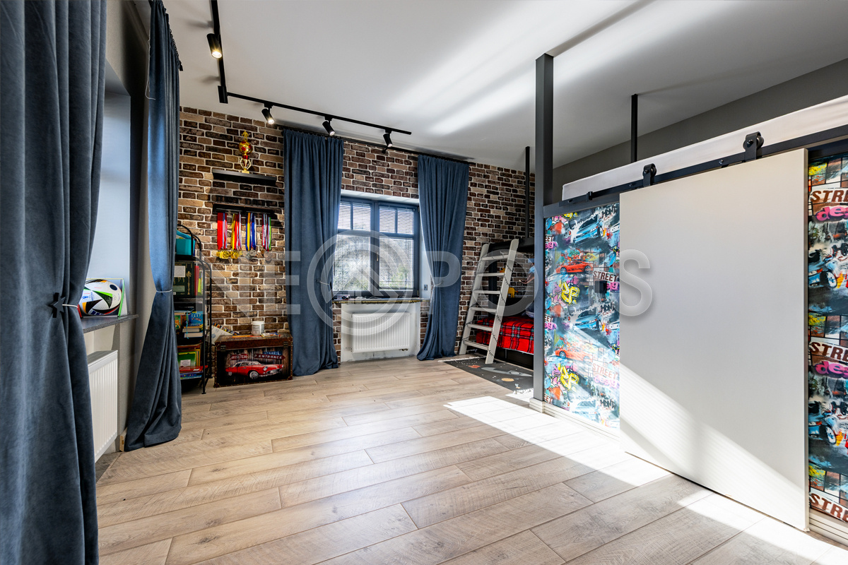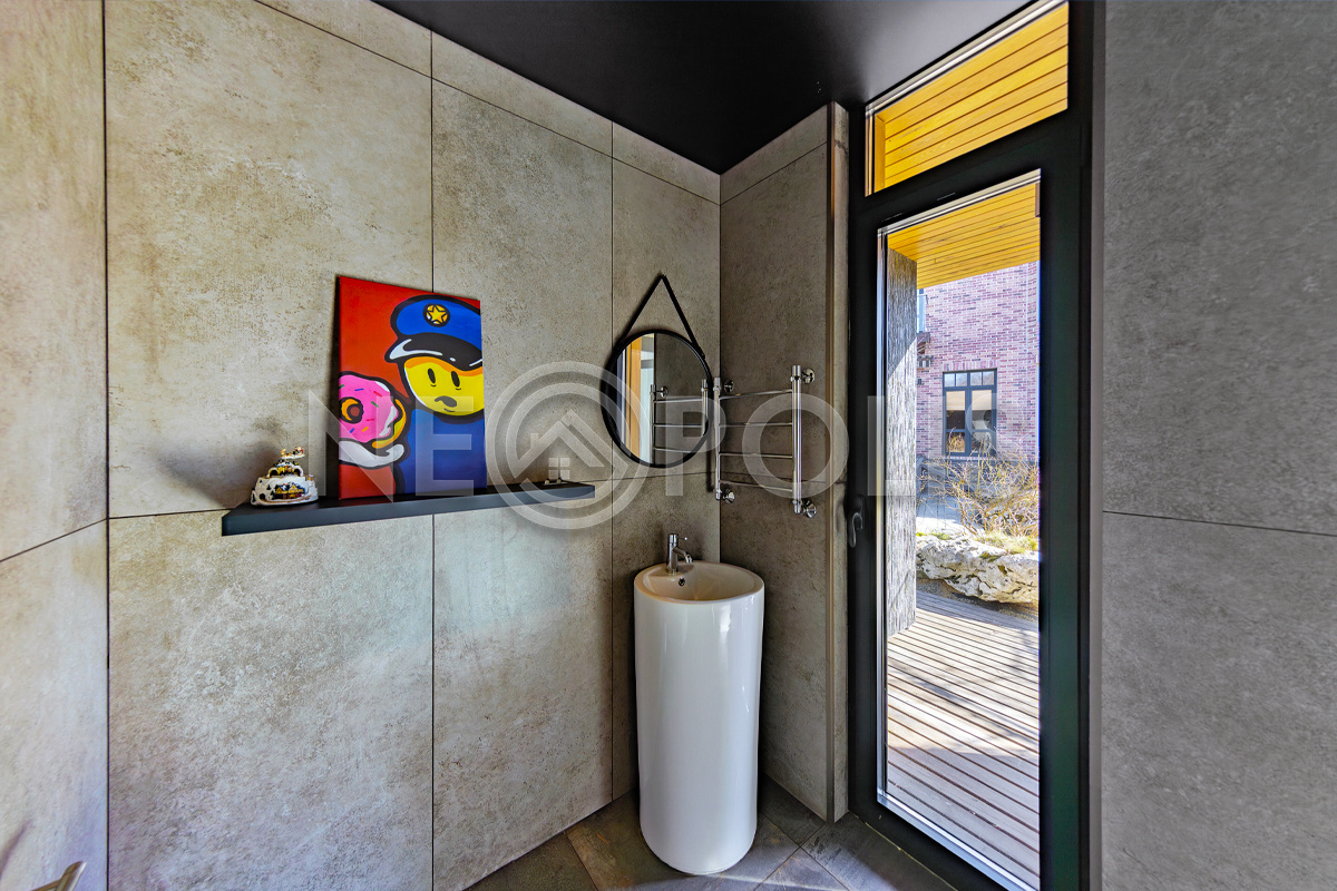 - 2 этаж:холл, мастер-спальня со своей гардеробной и ванной комнатами, спальня со своим санузлом, 2 спальни, ванная комната, постирочная, спортивно-игровая комната со своим санузлом.