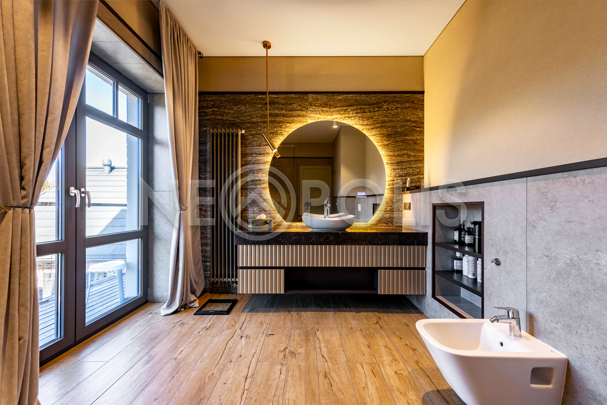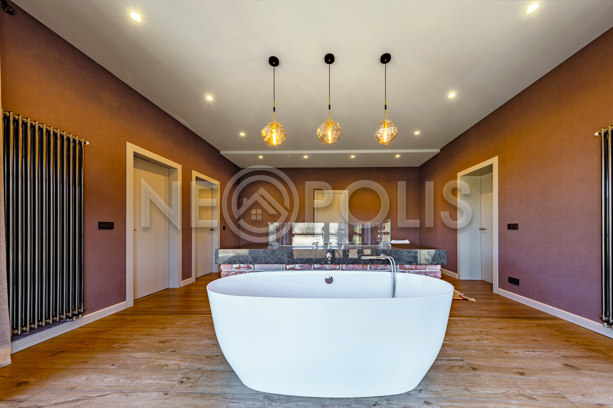 В хозяйской ванной установлена итальянская ванная из литого мрамора