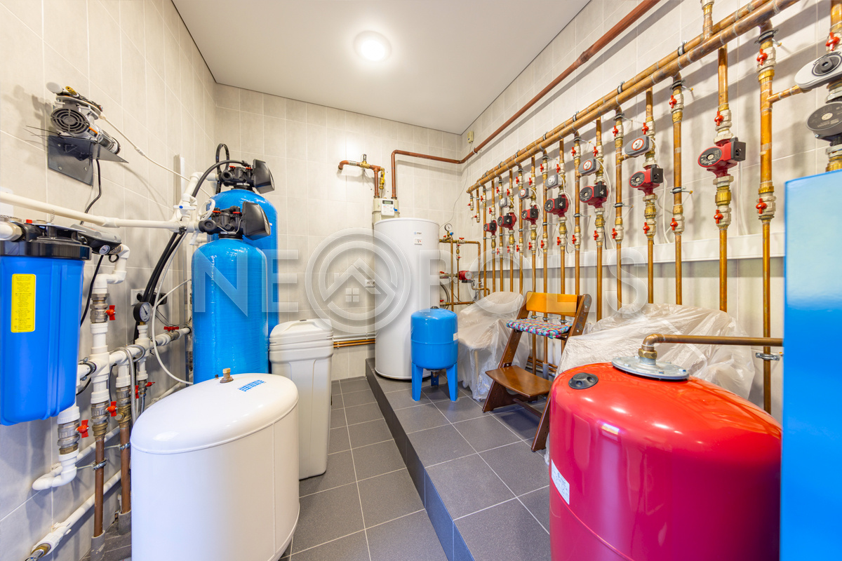 Разводка в котельной и разводка по дому полностью выполнена из меди.