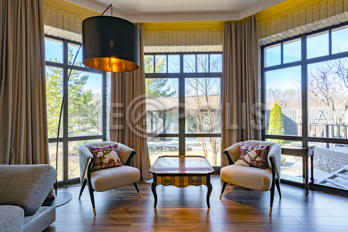 Объект расположен в комфортном для проживания поселке, на благоустроенном участке с видом на лес и ландшафтным дизайном. Полностью готов к круглогодичному проживанию. Отделка выполнена в классическом стиле из дорогих натуральных материалов.