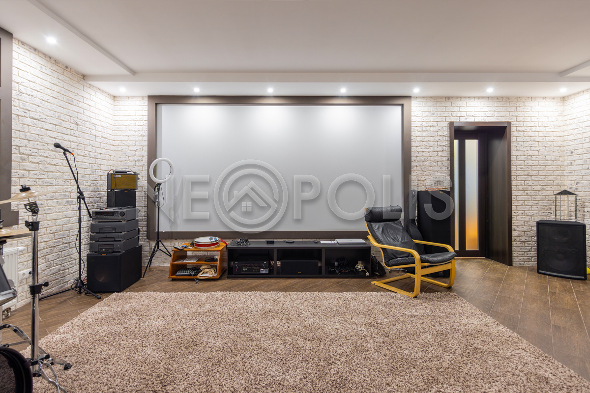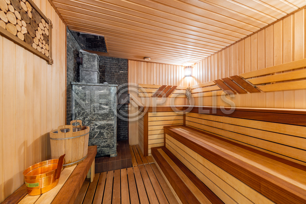- Цоколь:баня с 2 купелями, сауна, душевая, комната отдыха, кинозал, гостевая спальня, санузел ,котельная, 2 хозяйственные комнаты свободного назначения, кладовая