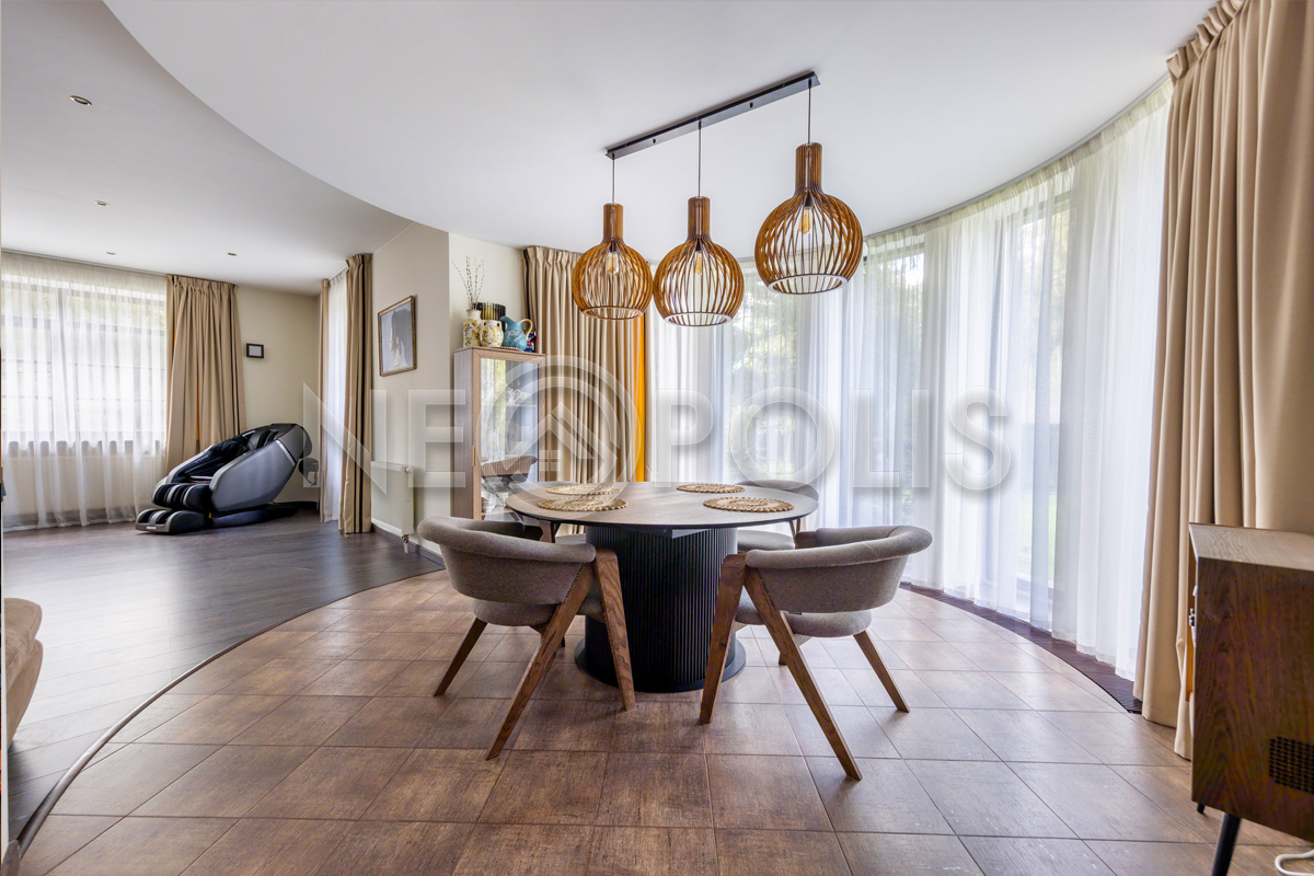 Объект расположен в комфортном для проживания поселке, на благоустроенном участке с видом на лес и ландшафтным дизайном. Полностью готов к круглогодичному проживанию. Отделка выполнена в классическом стиле из дорогих натуральных материалов.