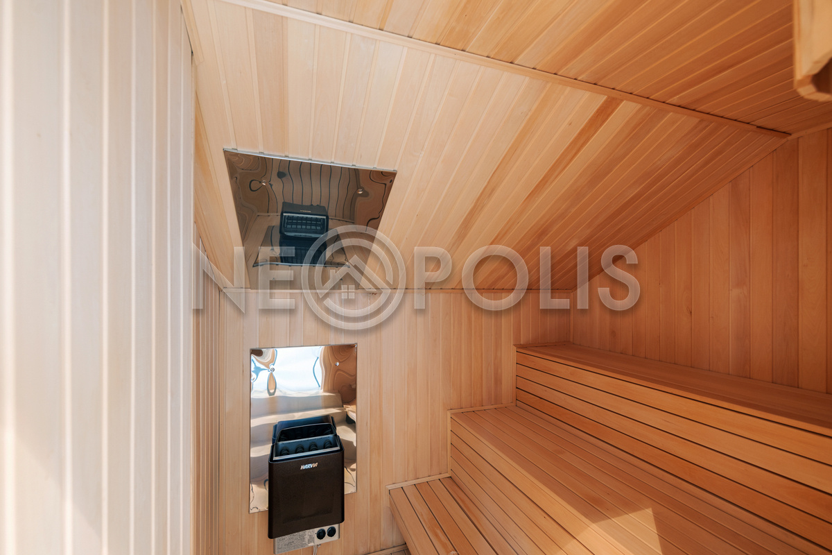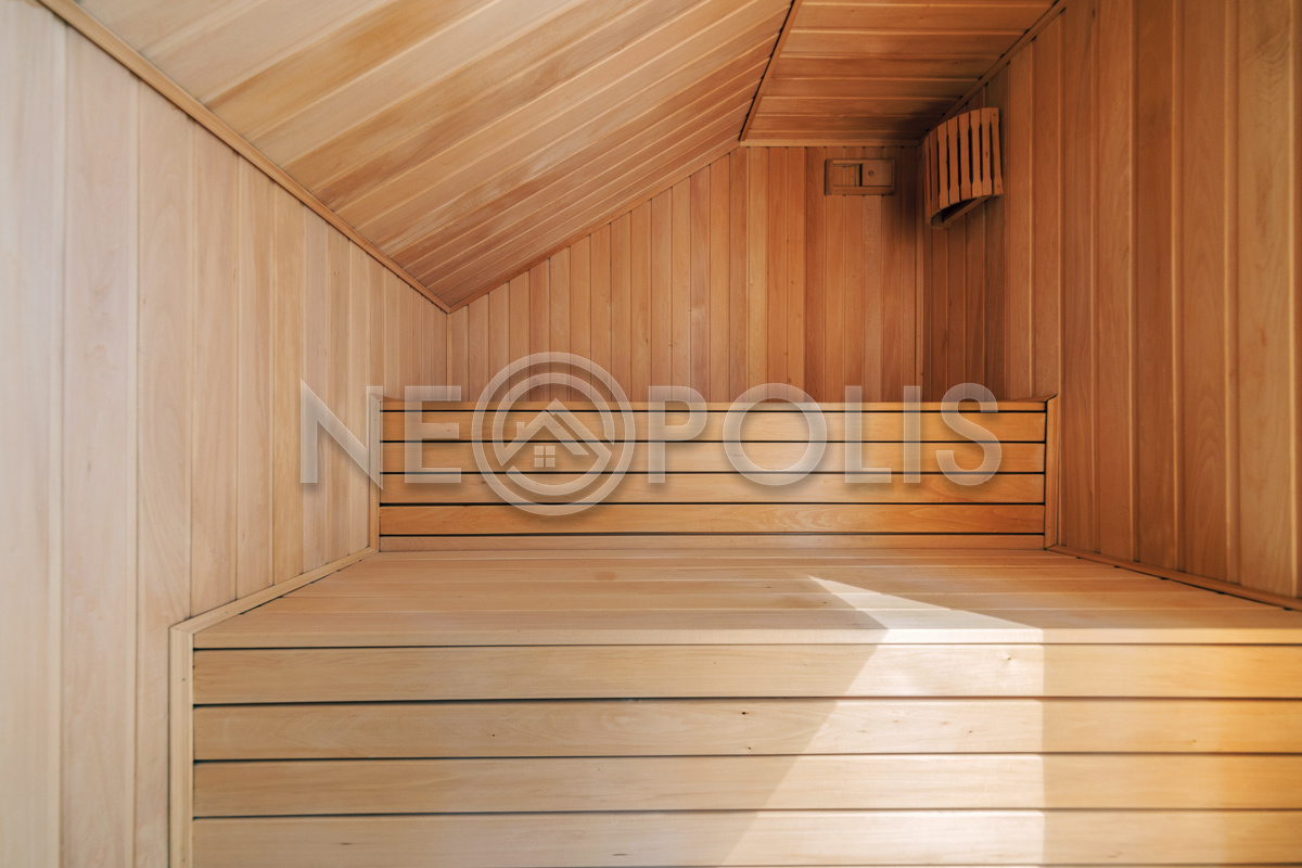 - 2 этаж:холл, три спальни, ванная комната, гостевая комната, комната отдыха с сауной и душевой.
