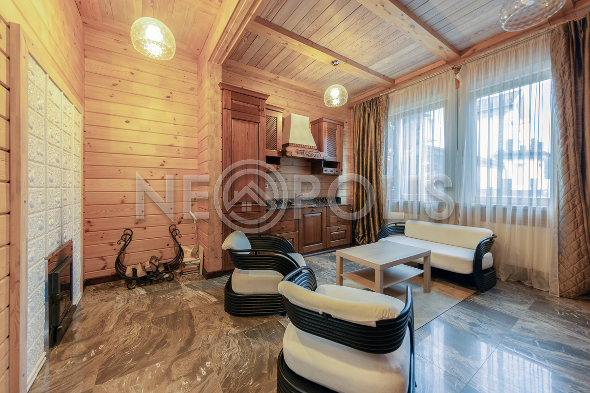 Объект расположен в комфортном для проживания поселке, на благоустроенном участке с видом на лес и ландшафтным дизайном. Полностью готов к круглогодичному проживанию. Отделка выполнена в классическом стиле из дорогих натуральных материалов.