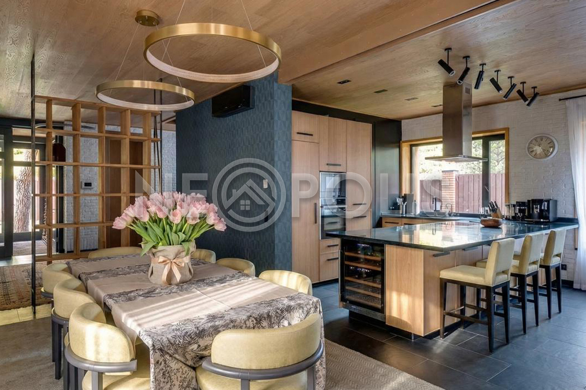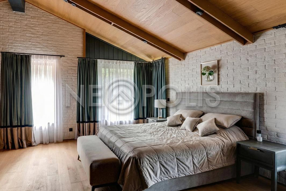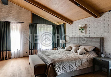 Объект расположен в комфортном для проживания поселке, на благоустроенном участке с видом на лес и ландшафтным дизайном. Полностью готов к круглогодичному проживанию. Отделка выполнена в классическом стиле из дорогих натуральных материалов.