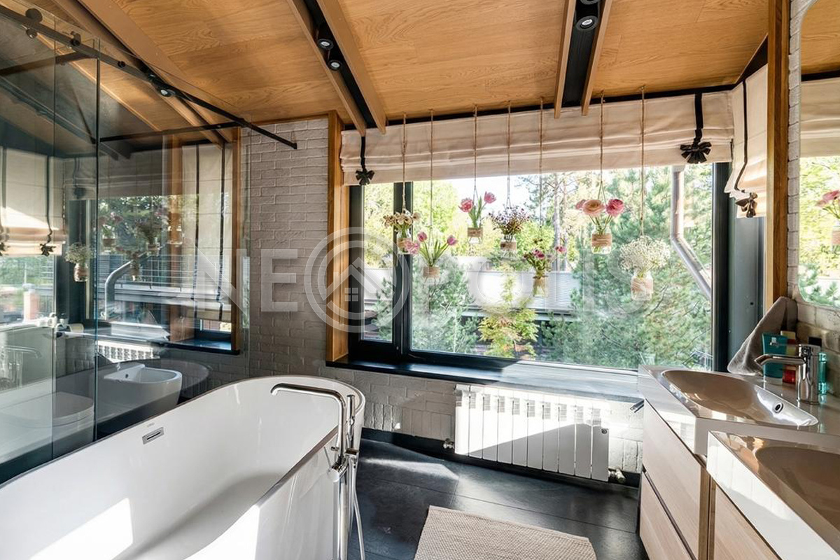 - Окна: панорамное остекление с видами на хвойный лес