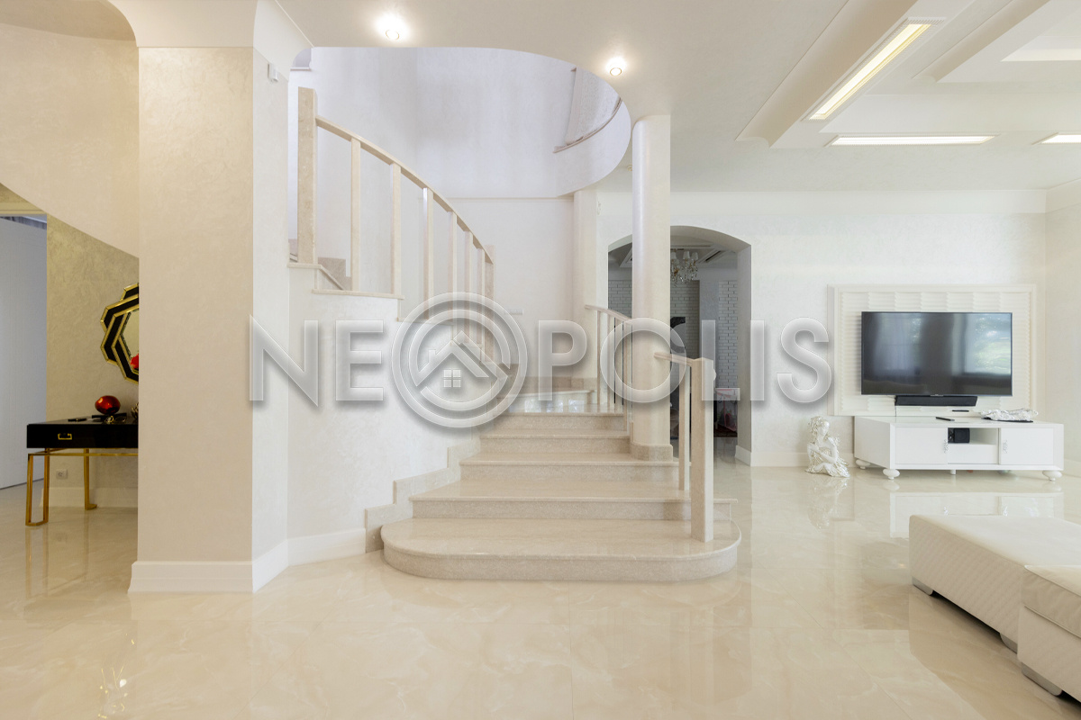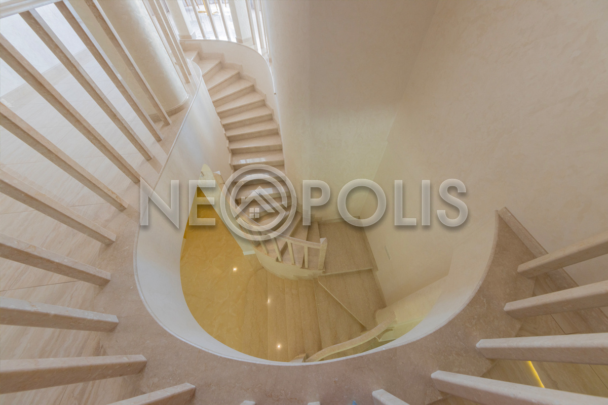 - Лестница: монолитное основание, полностью отделана мрамором Bottichino (Италия)