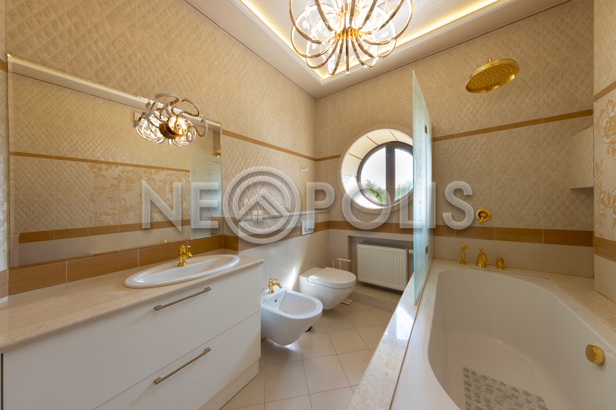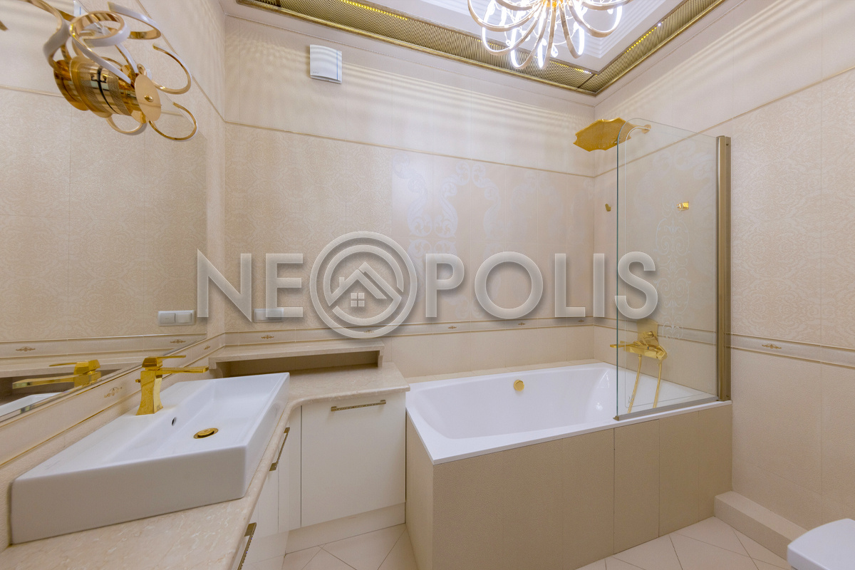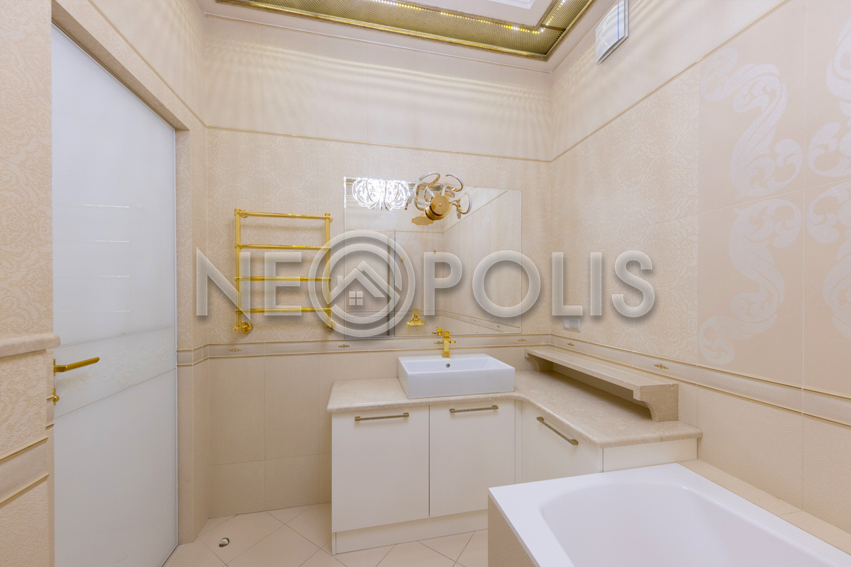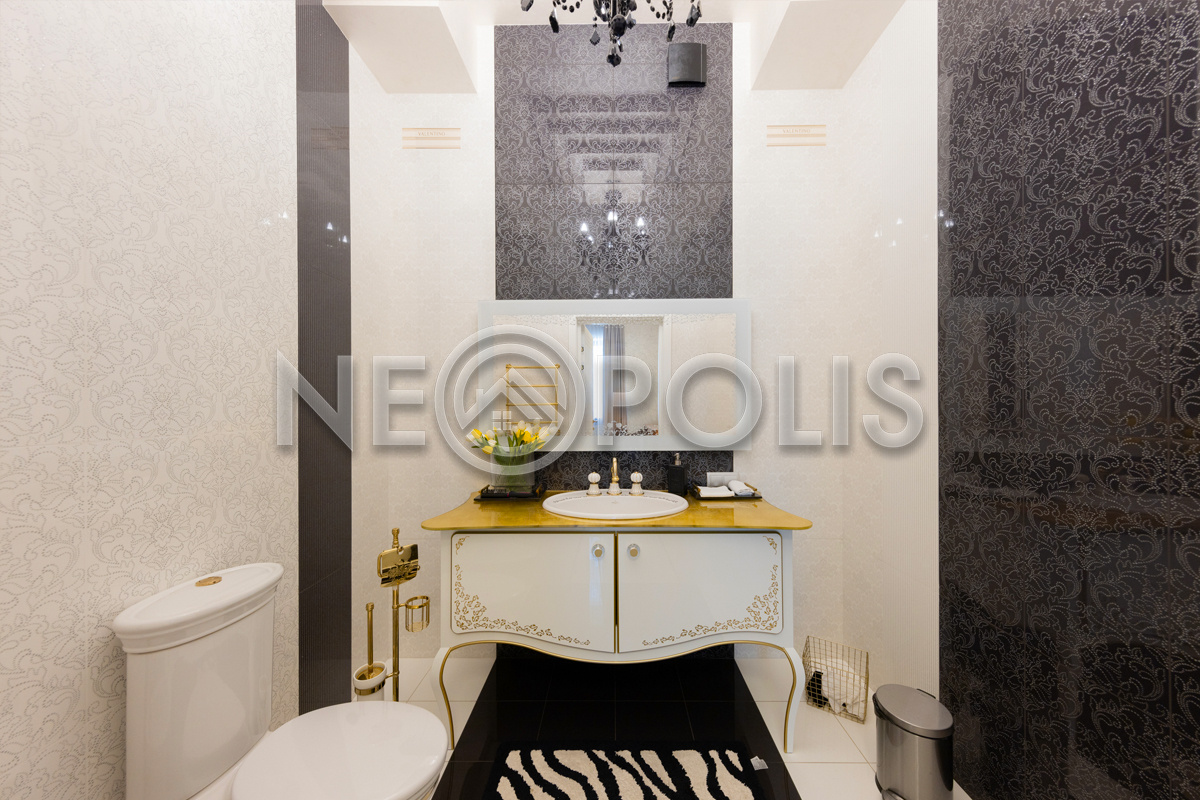 - Сантехника: Villeroy&Boch (Германия), Migliore (Италия), смесители: Cezares Lord (золото 24 карата)