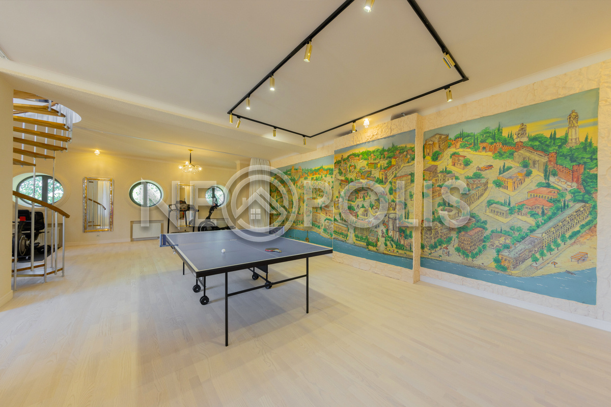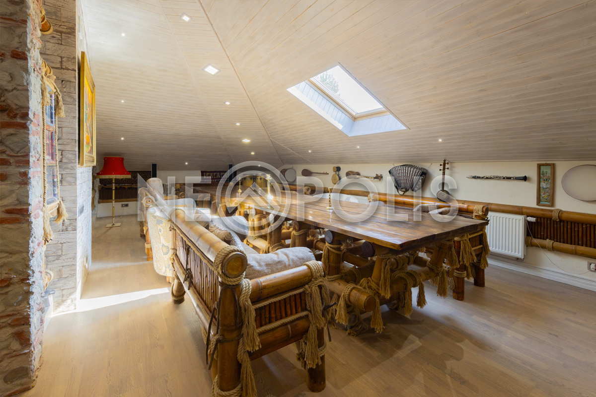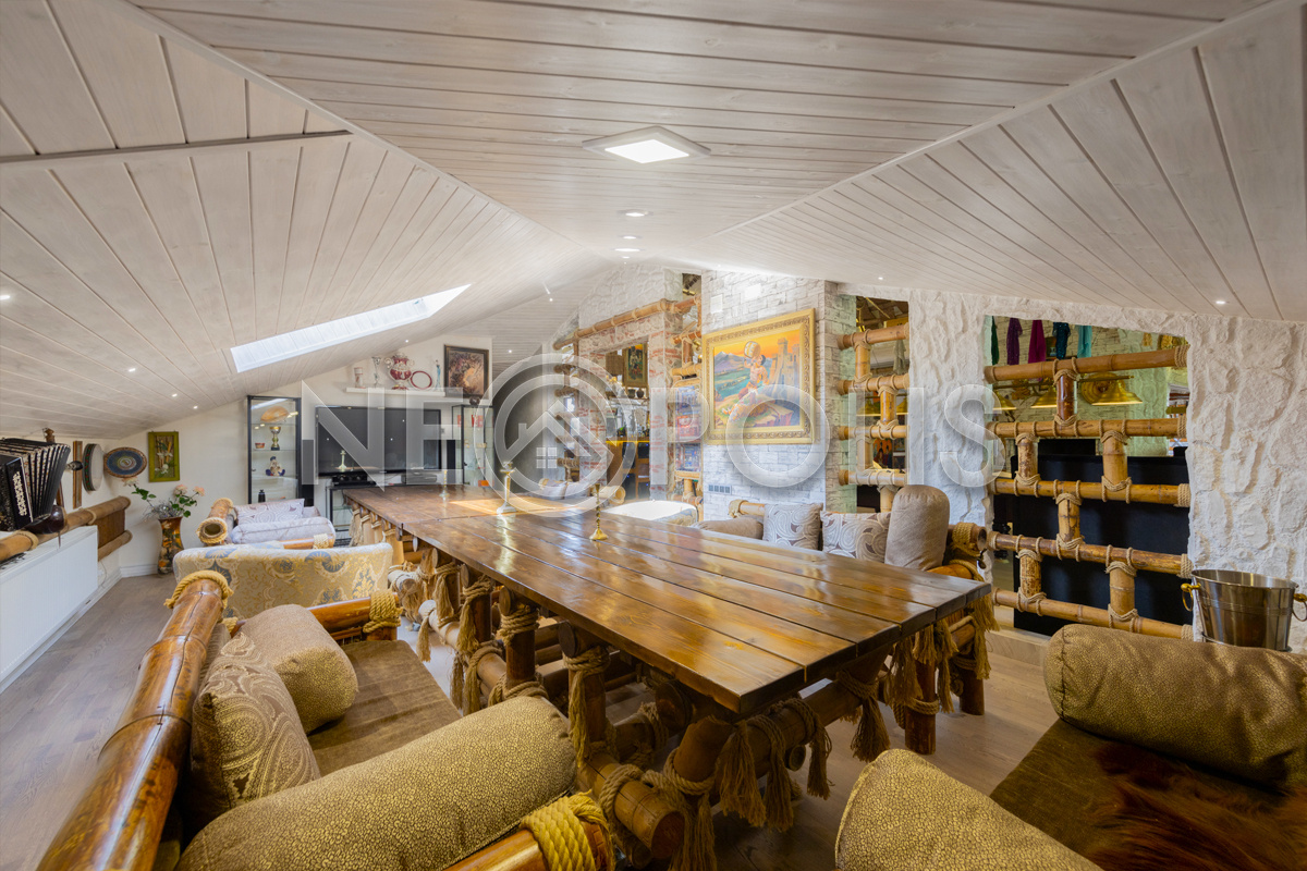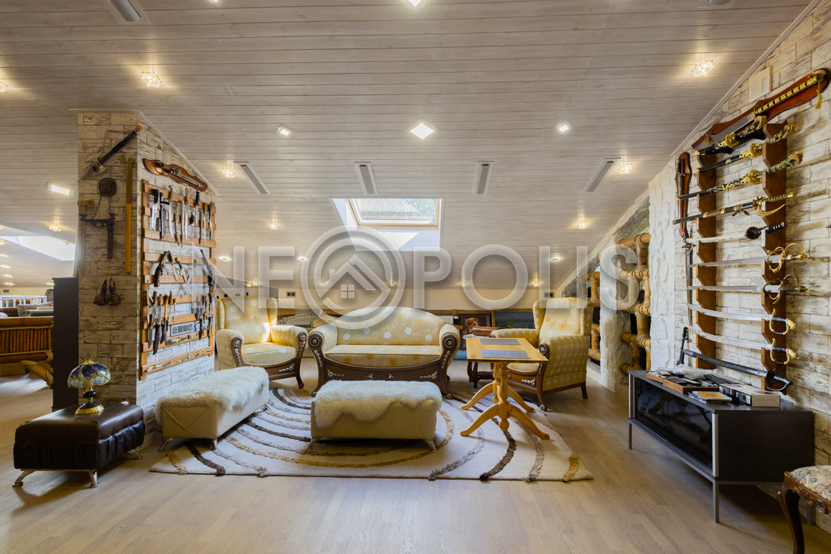 - Мансарда:холл, зона отдыха, бильярдная, зона бара с мангалом, караоке с панорамным остеклением и выходом на балкон, переговорная, две спальни, санузел.
