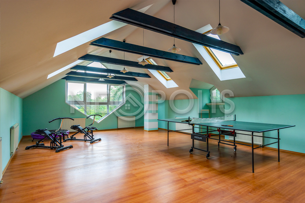 - Мансарда:спальня, тренажерный зал, игровая.