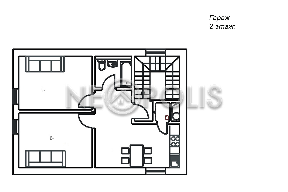 Гараж 125 кв.м. на 2 авто с котельной и квартирой для персонала на втором этаже (2 спальни, кухня и санузел).