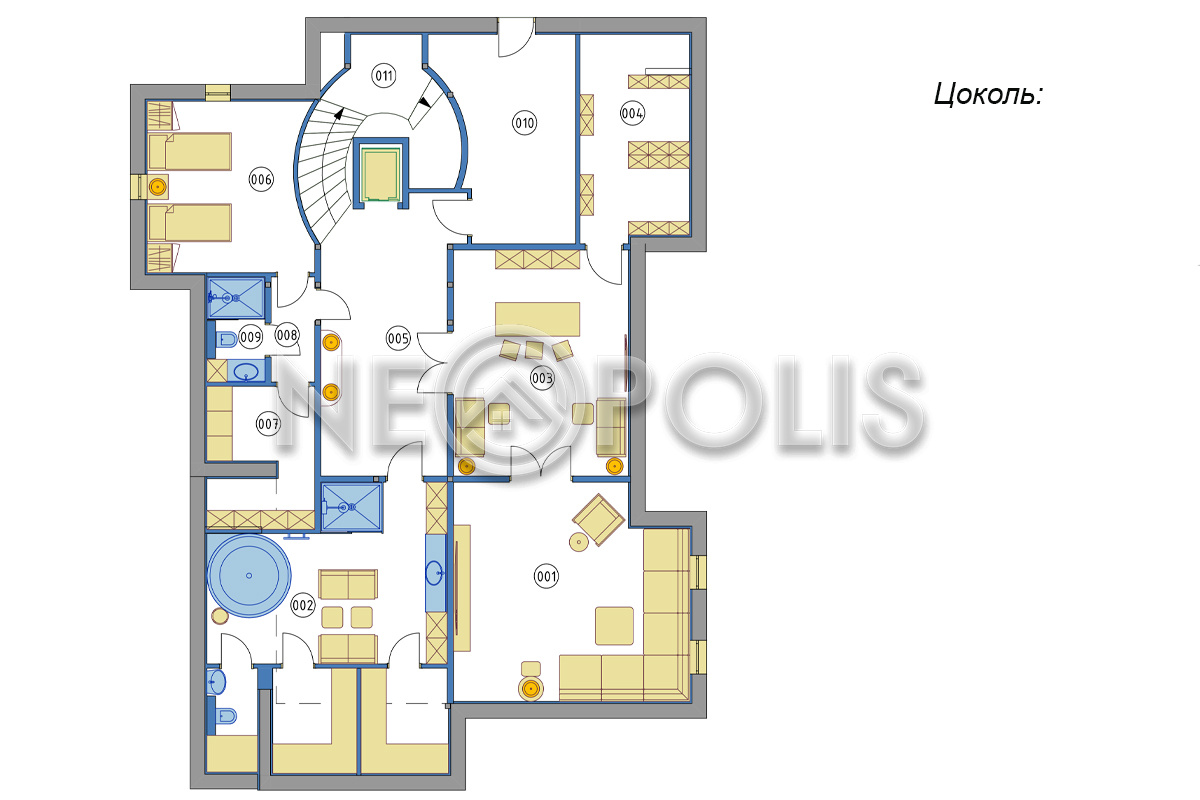 - Цоколь:холл, кинозал, караоке бар, винная комната, комната отдыха с сауной и санузлом, комната персонала, санузел, прачечная.