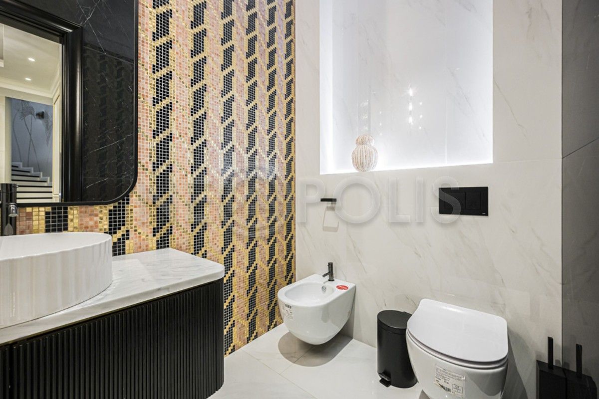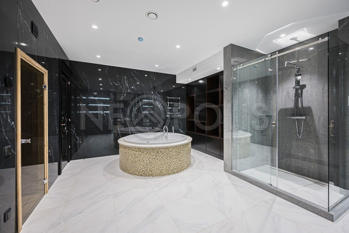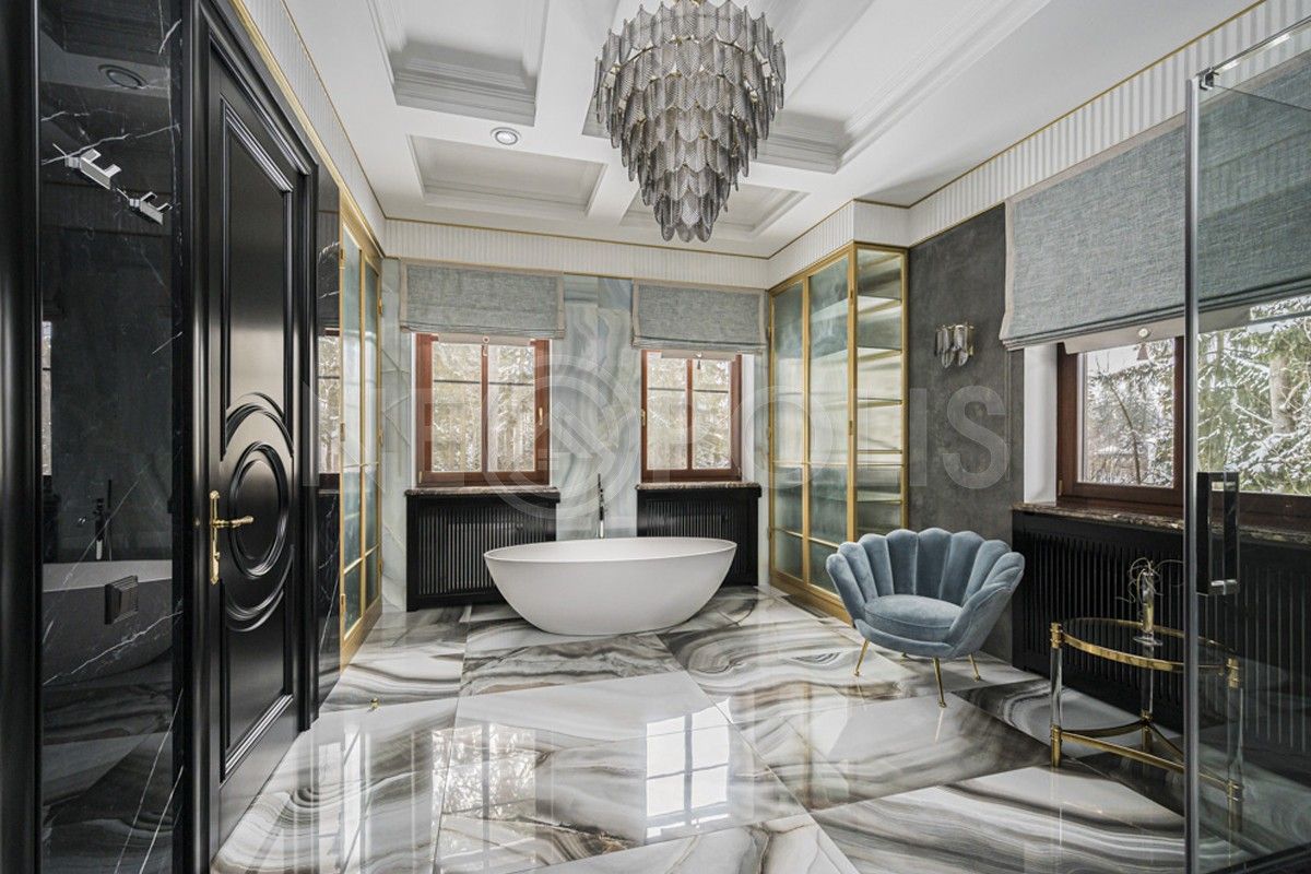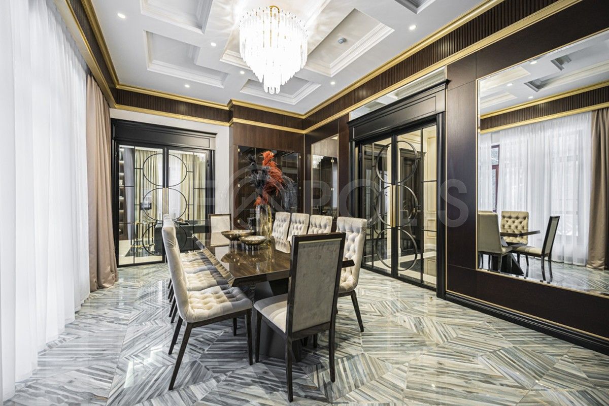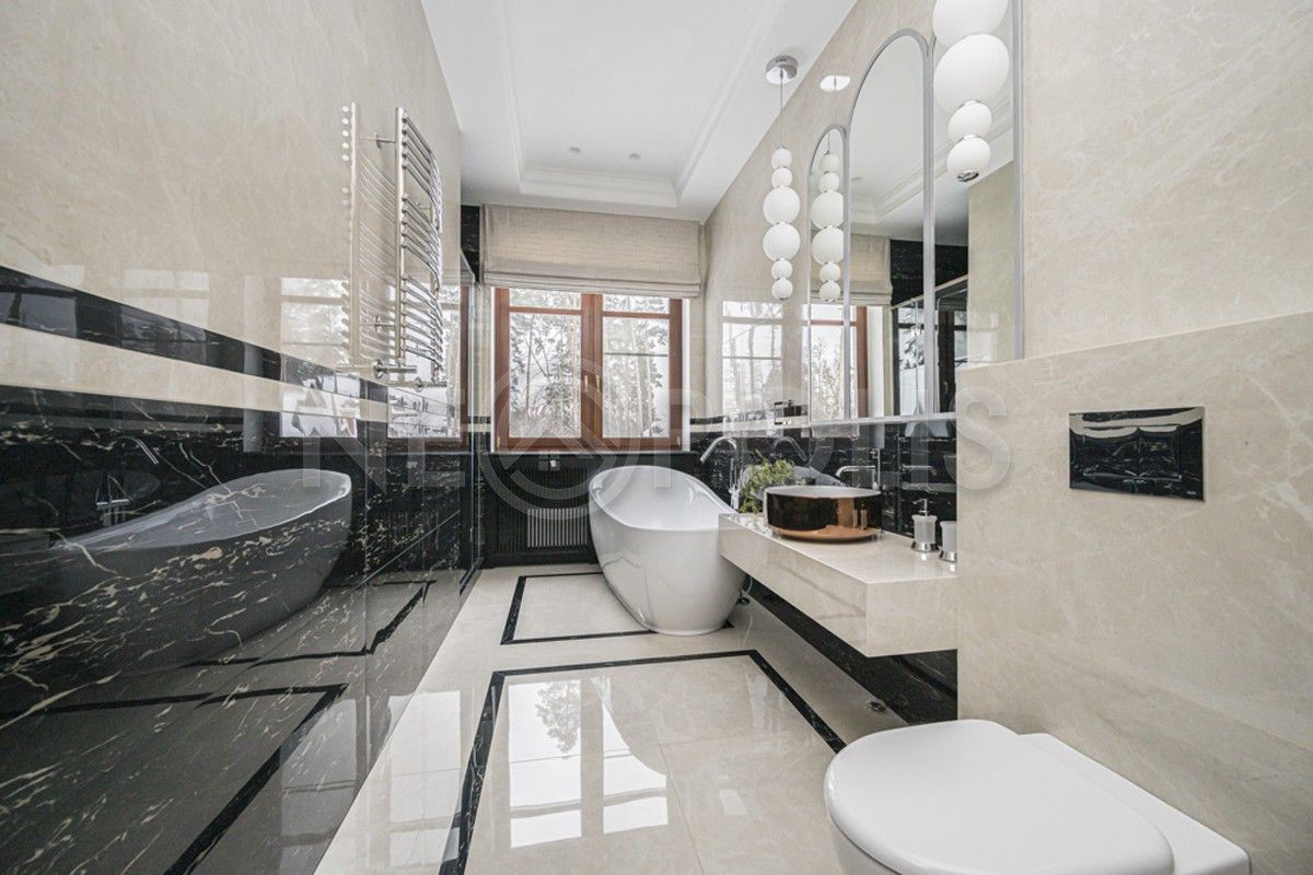 Объект расположен в комфортном для проживания поселке, на благоустроенном участке с видом на лес и ландшафтным дизайном. Полностью готов к круглогодичному проживанию. Отделка выполнена в классическом стиле из дорогих натуральных материалов.