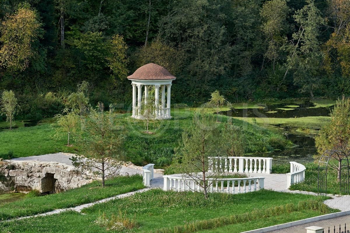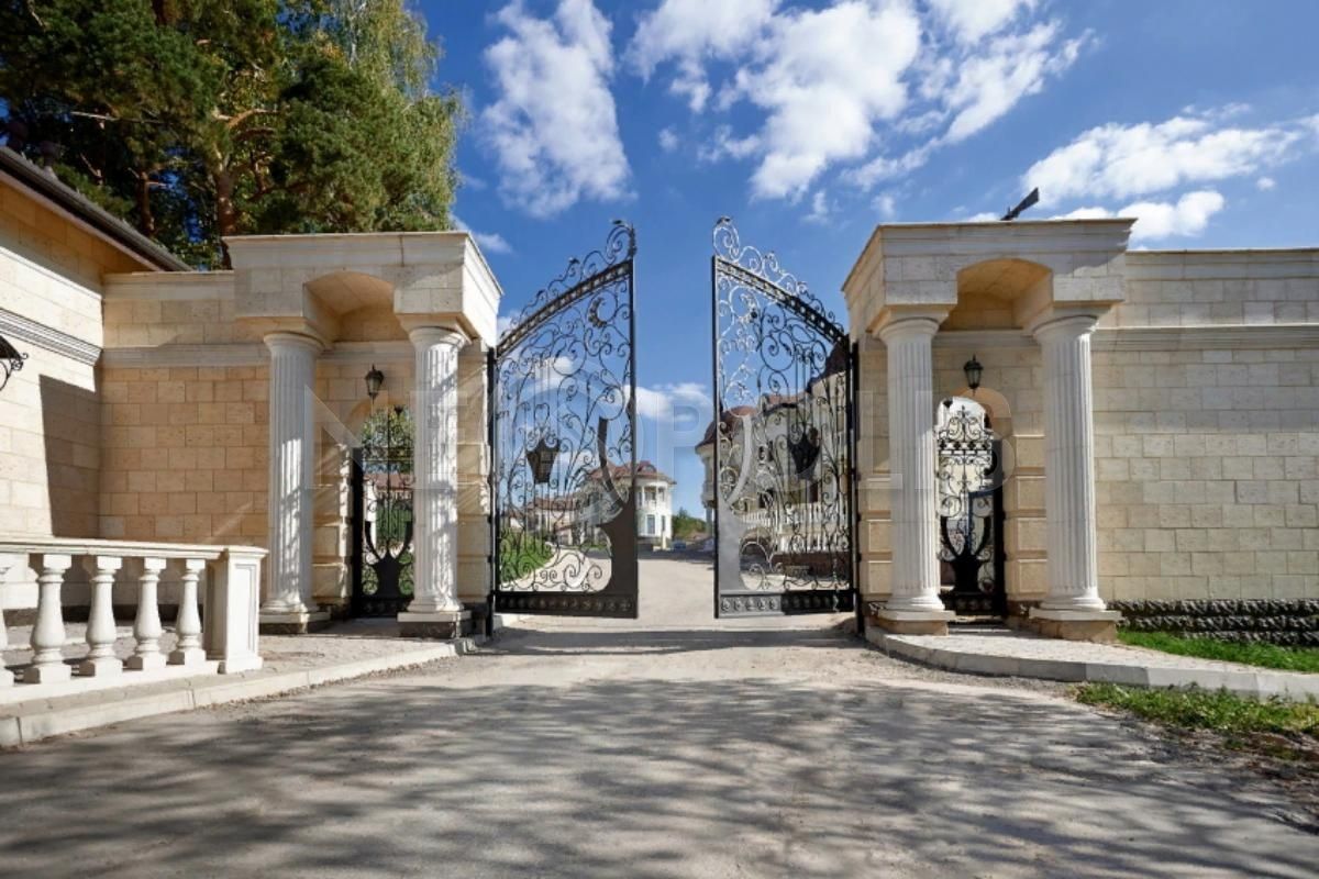 Участок огорожен кованным забором по периметру (в едином стиле поселка), кованные ворота и калитка.