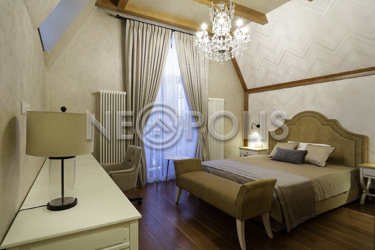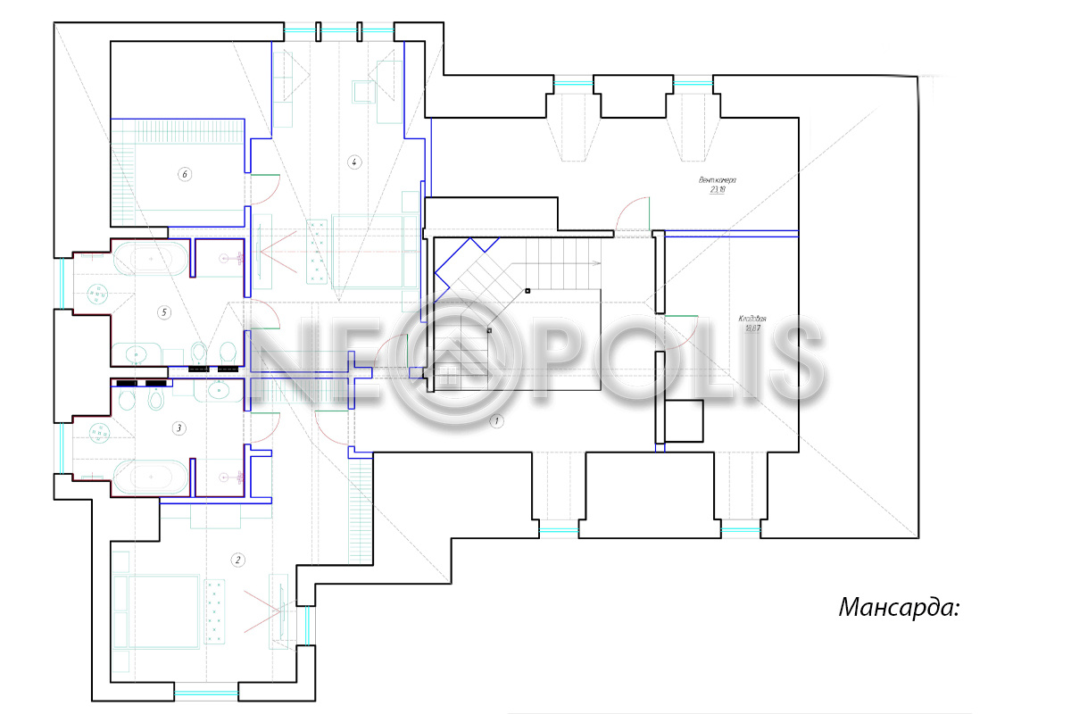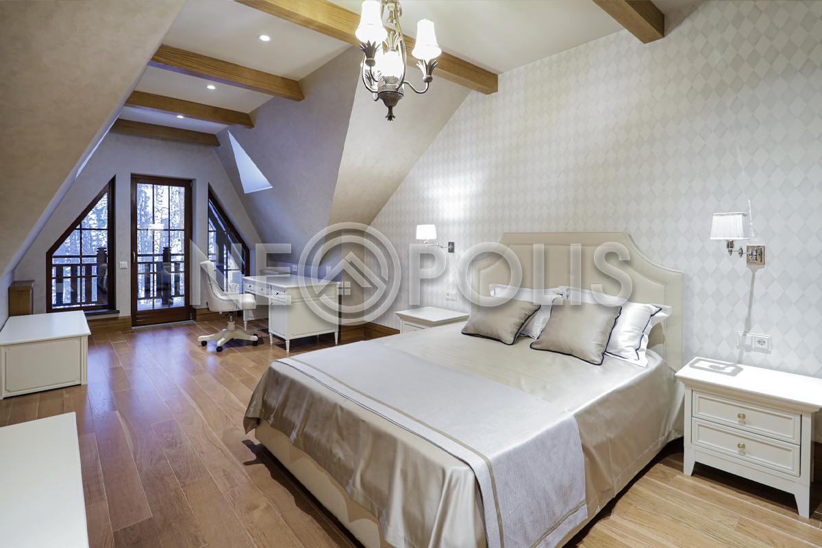 - Мансарда:холл, 2 спальни с гардеробными и ванными комнатами.