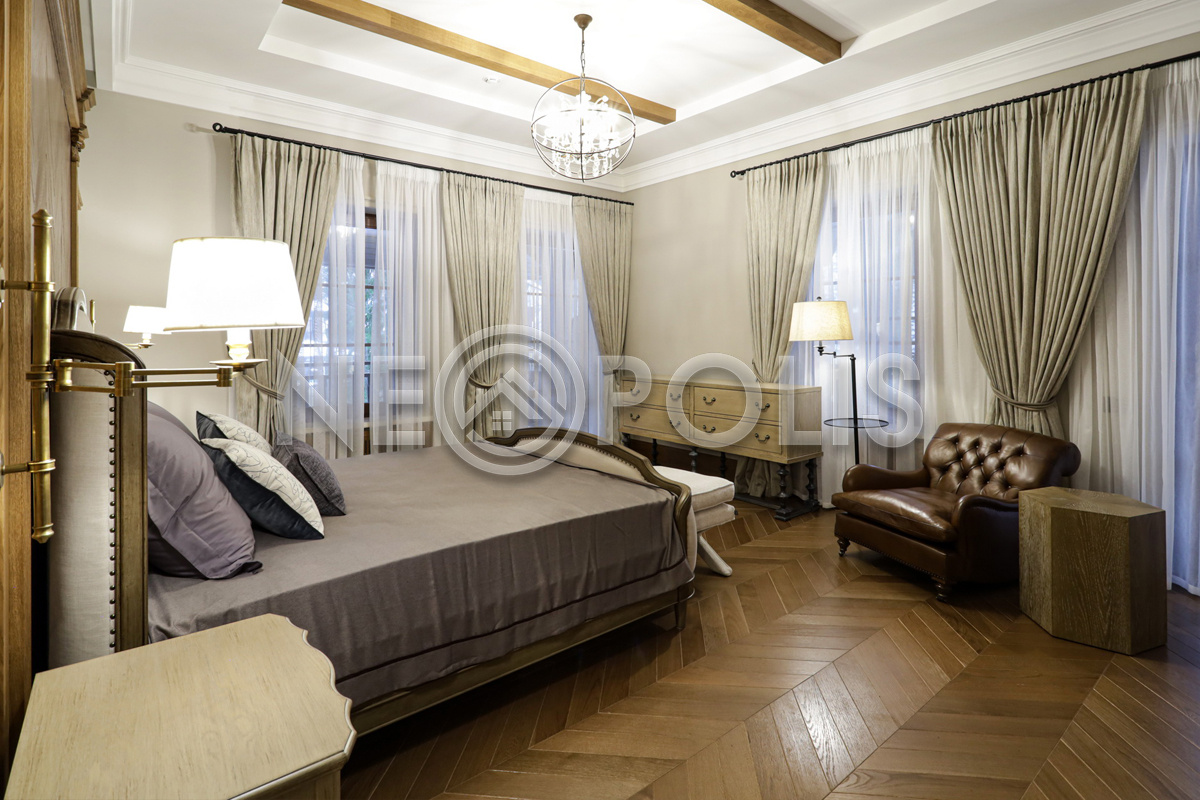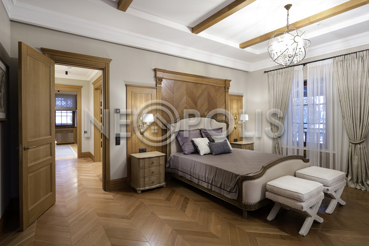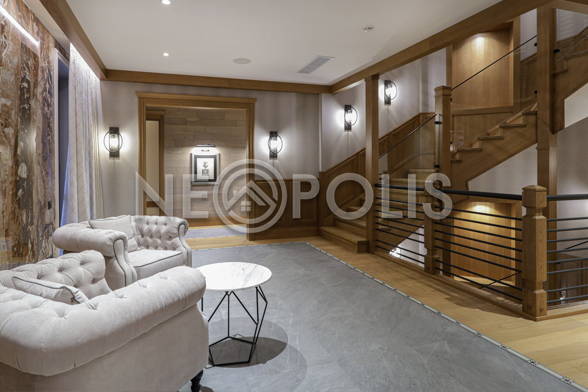 - 2 этаж:холл, мастер блок: спальня с гардеробной и ванной комнатой, 2 спальни с гардеробными и ванными комнатами, библиотека.