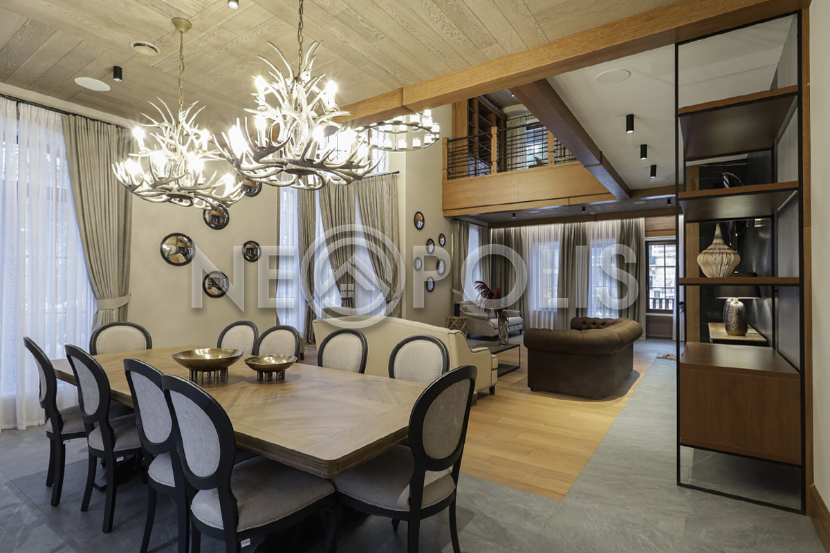 Объект расположен в комфортном для проживания поселке, на благоустроенном участке с видом на лес и ландшафтным дизайном. Полностью готов к круглогодичному проживанию. Отделка выполнена в классическом стиле из дорогих натуральных материалов.