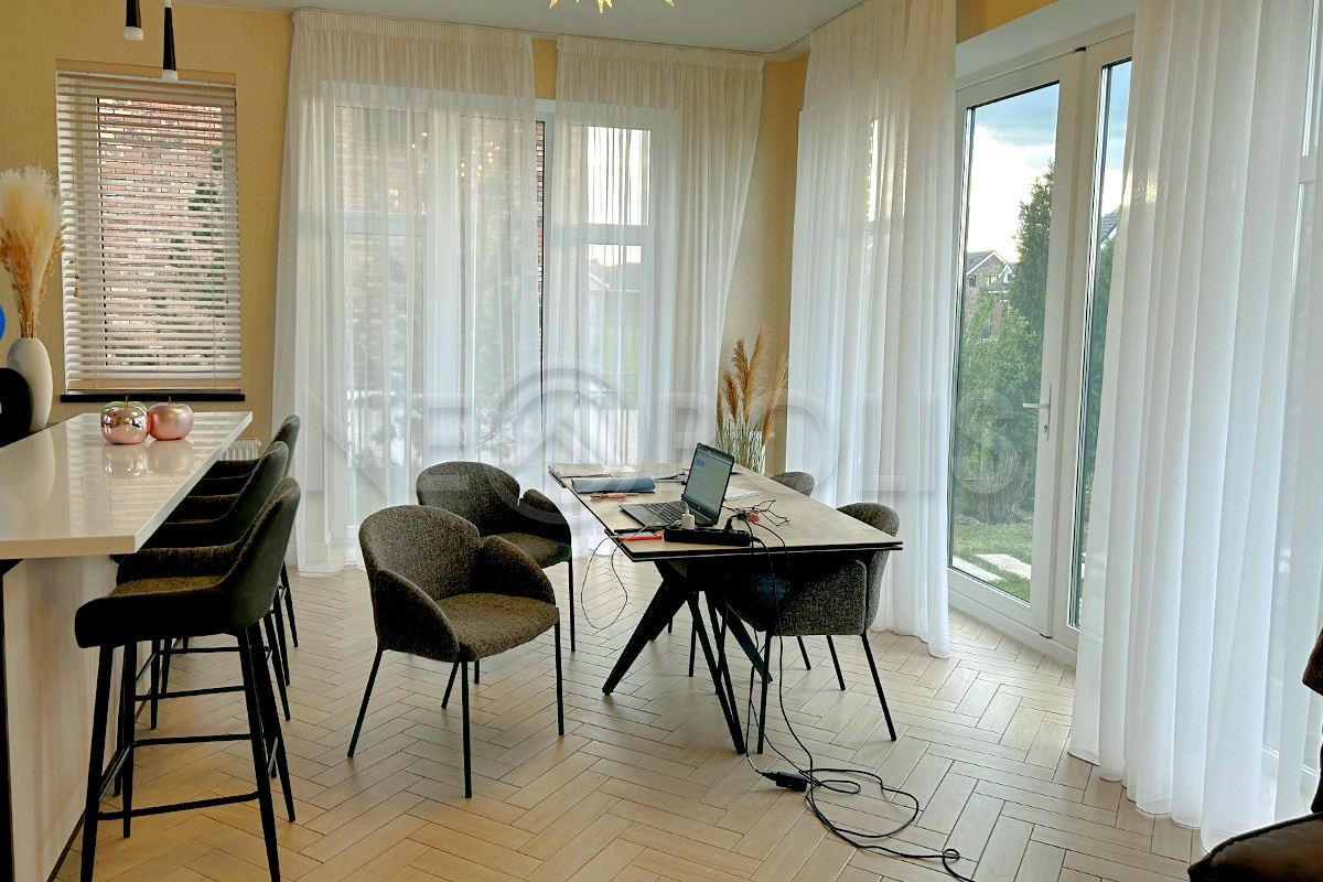 Объект расположен в комфортном для проживания поселке, на благоустроенном участке с видом на лес и ландшафтным дизайном. Полностью готов к круглогодичному проживанию. Отделка выполнена в классическом стиле из дорогих натуральных материалов.