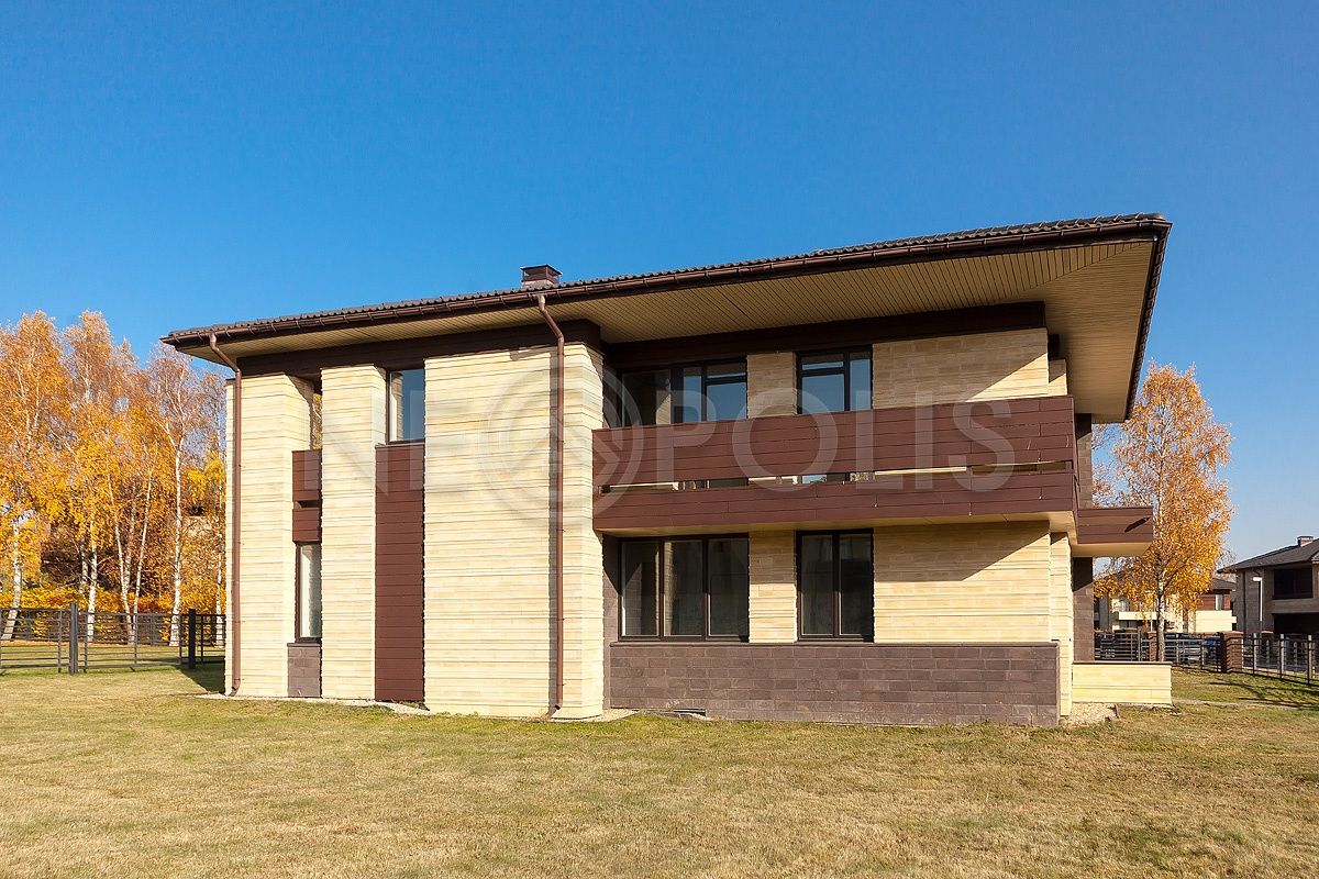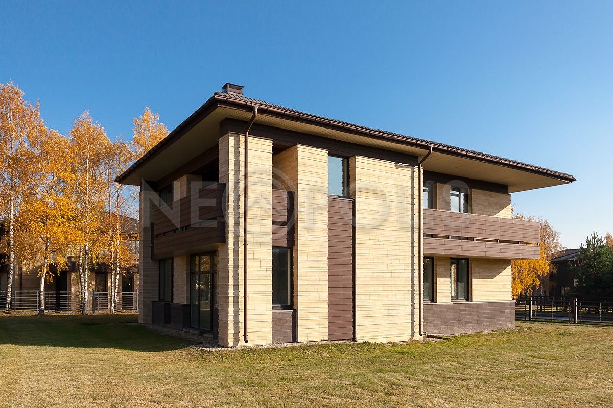 - Кровля многоскатная, покрытая цементно-песчаной черепицей BRAAS (Германия)