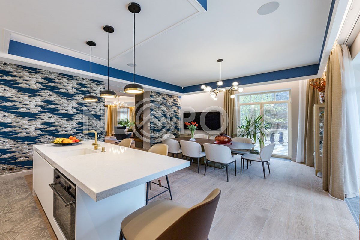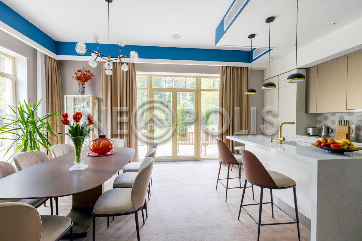 Объект расположен в комфортном для проживания поселке, на благоустроенном участке с видом на лес и ландшафтным дизайном. Полностью готов к круглогодичному проживанию. Отделка выполнена в классическом стиле из дорогих натуральных материалов.