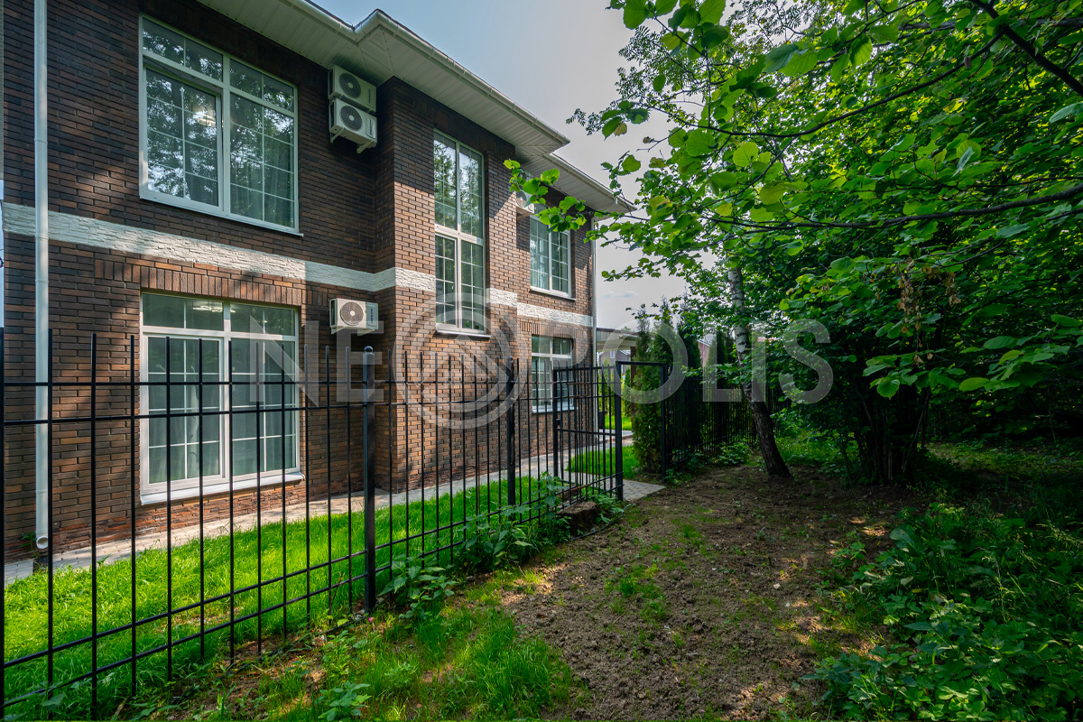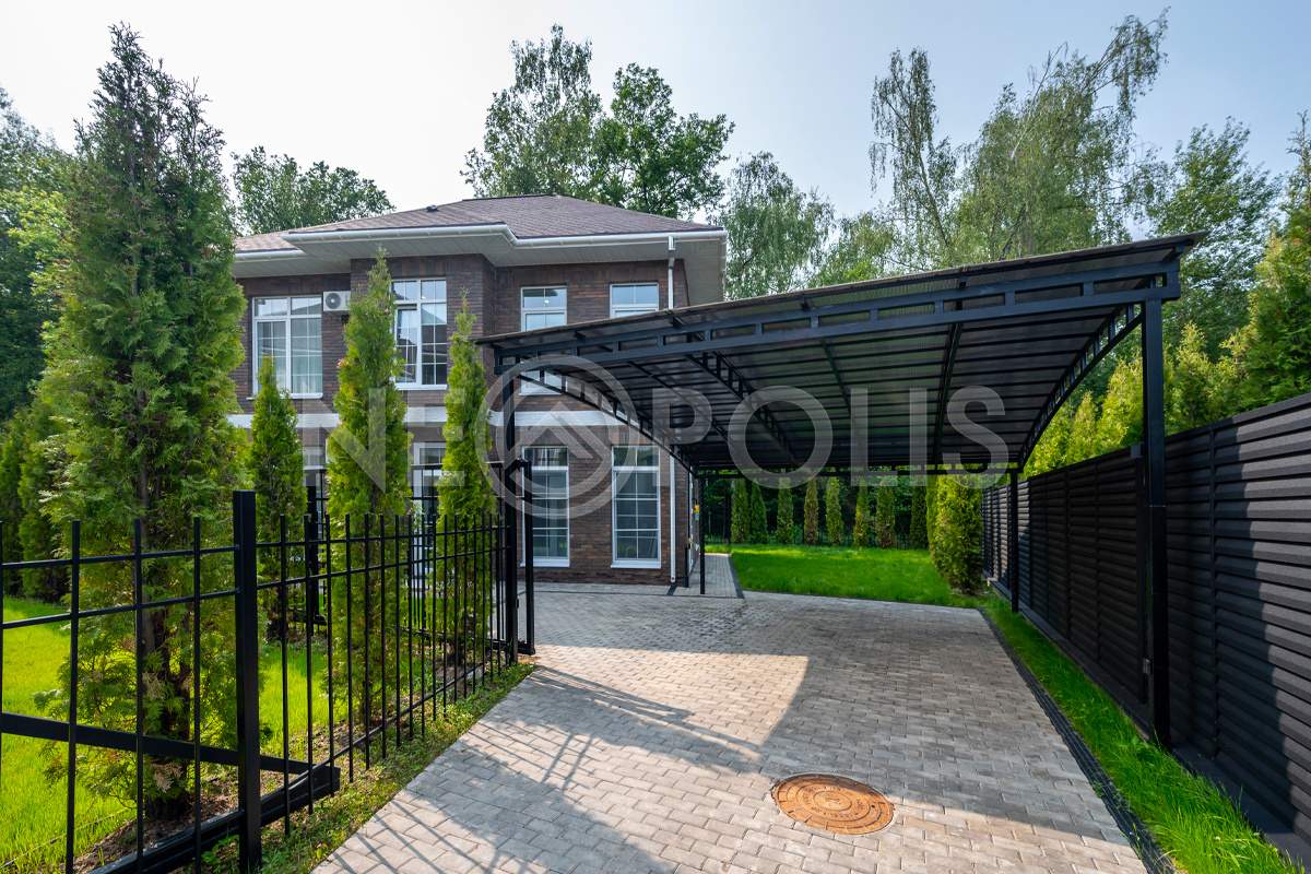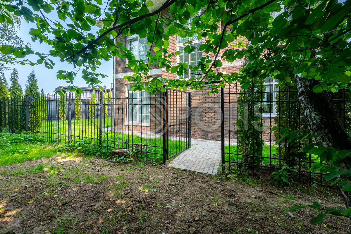 Ровный участок имеет собственный выход в лес, огорожен кованным забором, въезд на территорию через автоматические ворота.