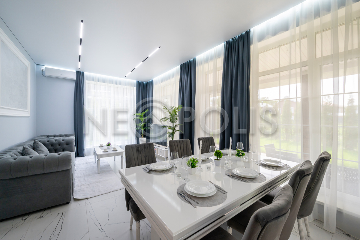 Объект расположен в комфортном для проживания поселке, на благоустроенном участке с видом на лес и ландшафтным дизайном. Полностью готов к круглогодичному проживанию. Отделка выполнена в классическом стиле из дорогих натуральных материалов.