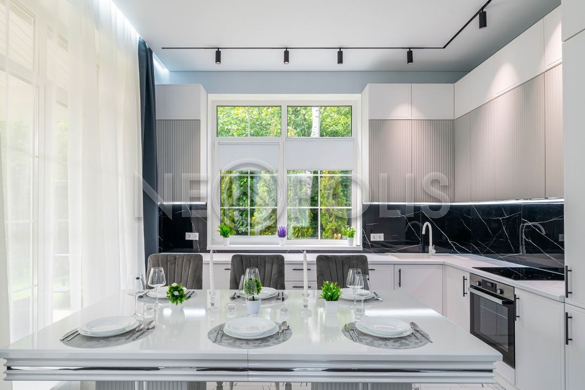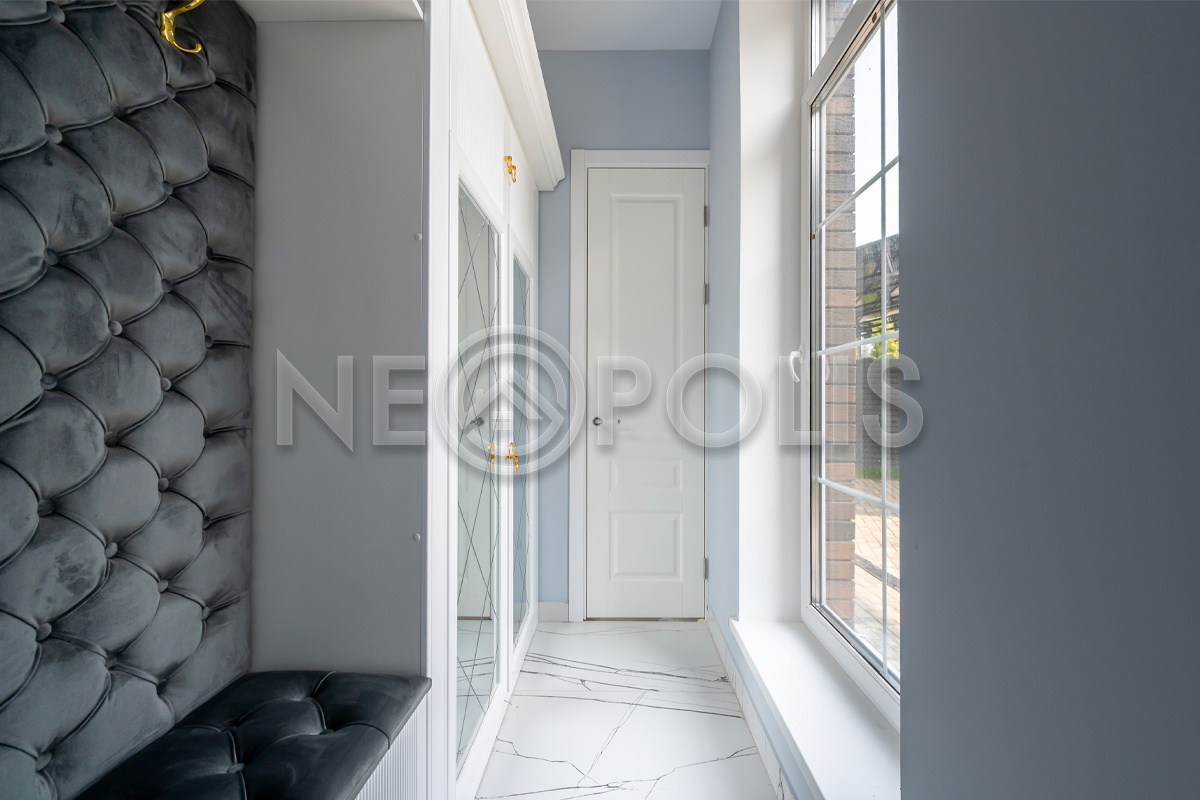 - Окна: стеклопакеты ПВХ (2-х камерные белые с раскладкой REACHMONT, большого размера Н-2.5 м, на мансарде - мансардные Velux)