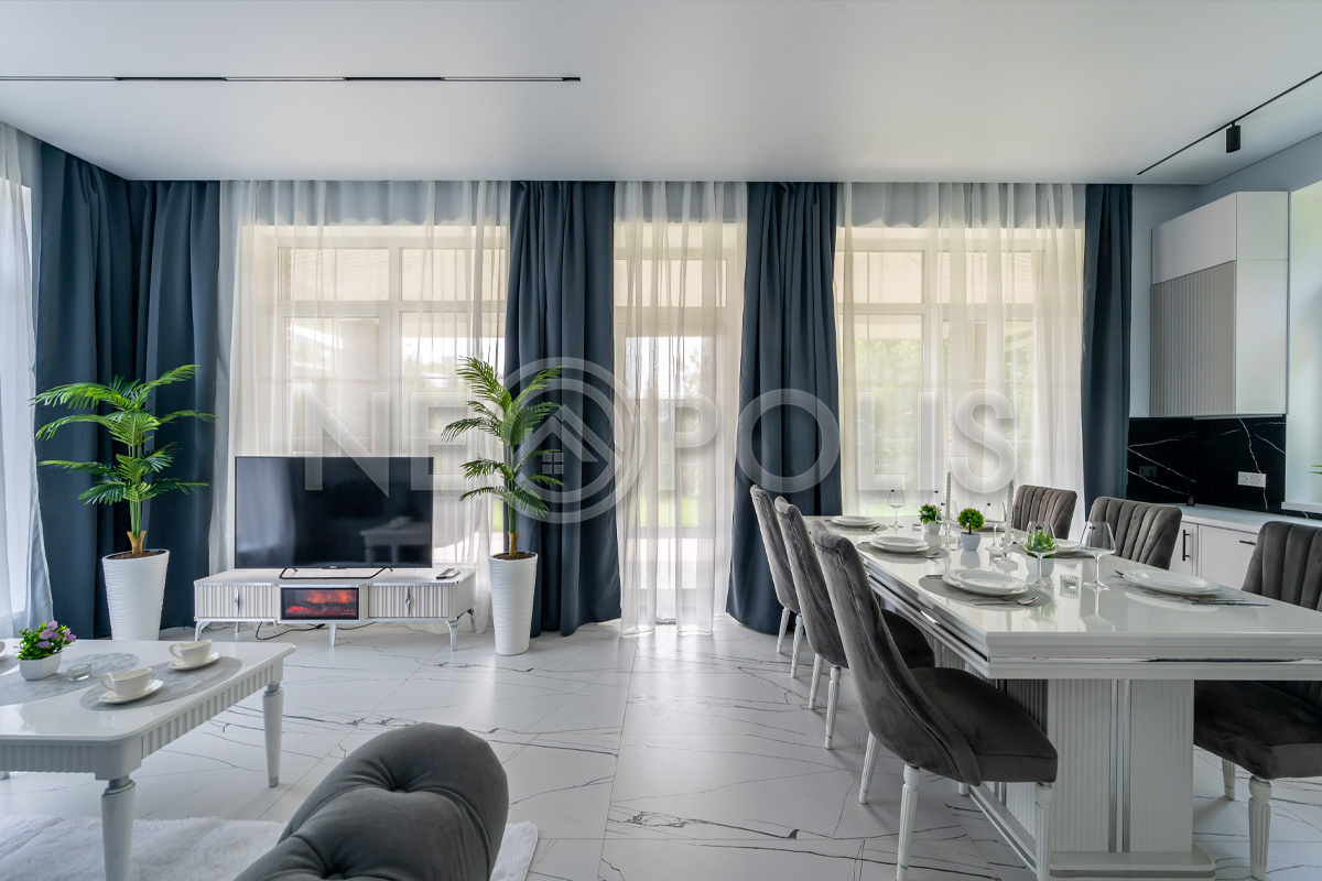 - 1 этаж:прихожая с гардеробной, кухня-столовая, гостиная с выходом на террасу, спальня, санузел, котельная с дополнительным входом с улицы.
