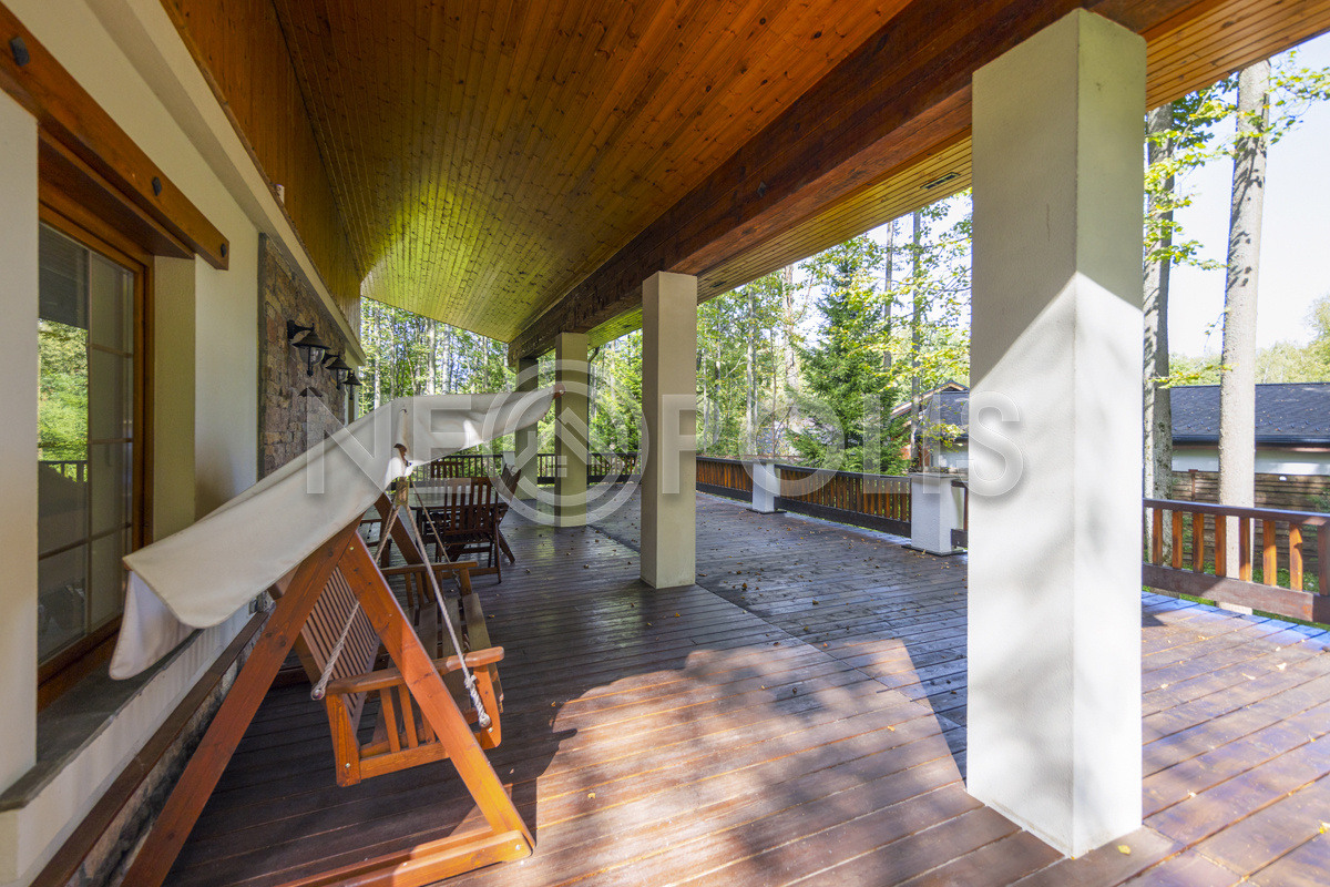Объект расположен в комфортном для проживания поселке, на благоустроенном участке с видом на лес и ландшафтным дизайном. Полностью готов к круглогодичному проживанию. Отделка выполнена в классическом стиле из дорогих натуральных материалов.