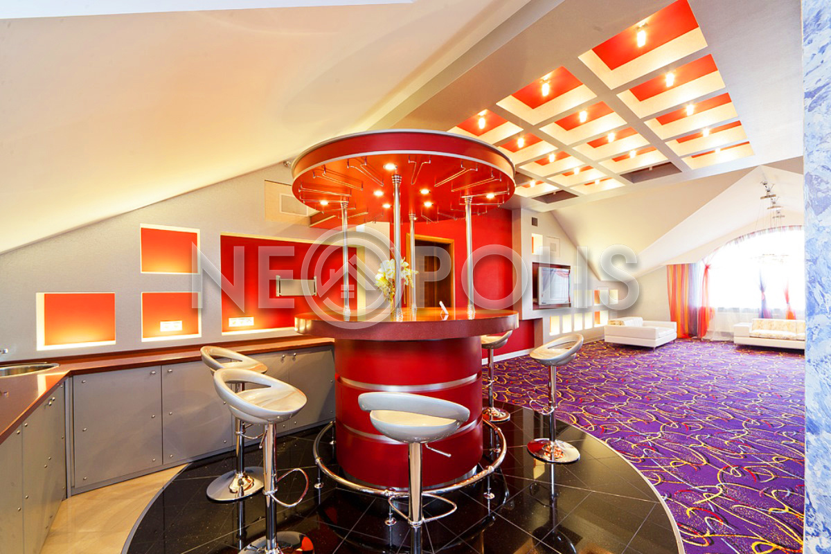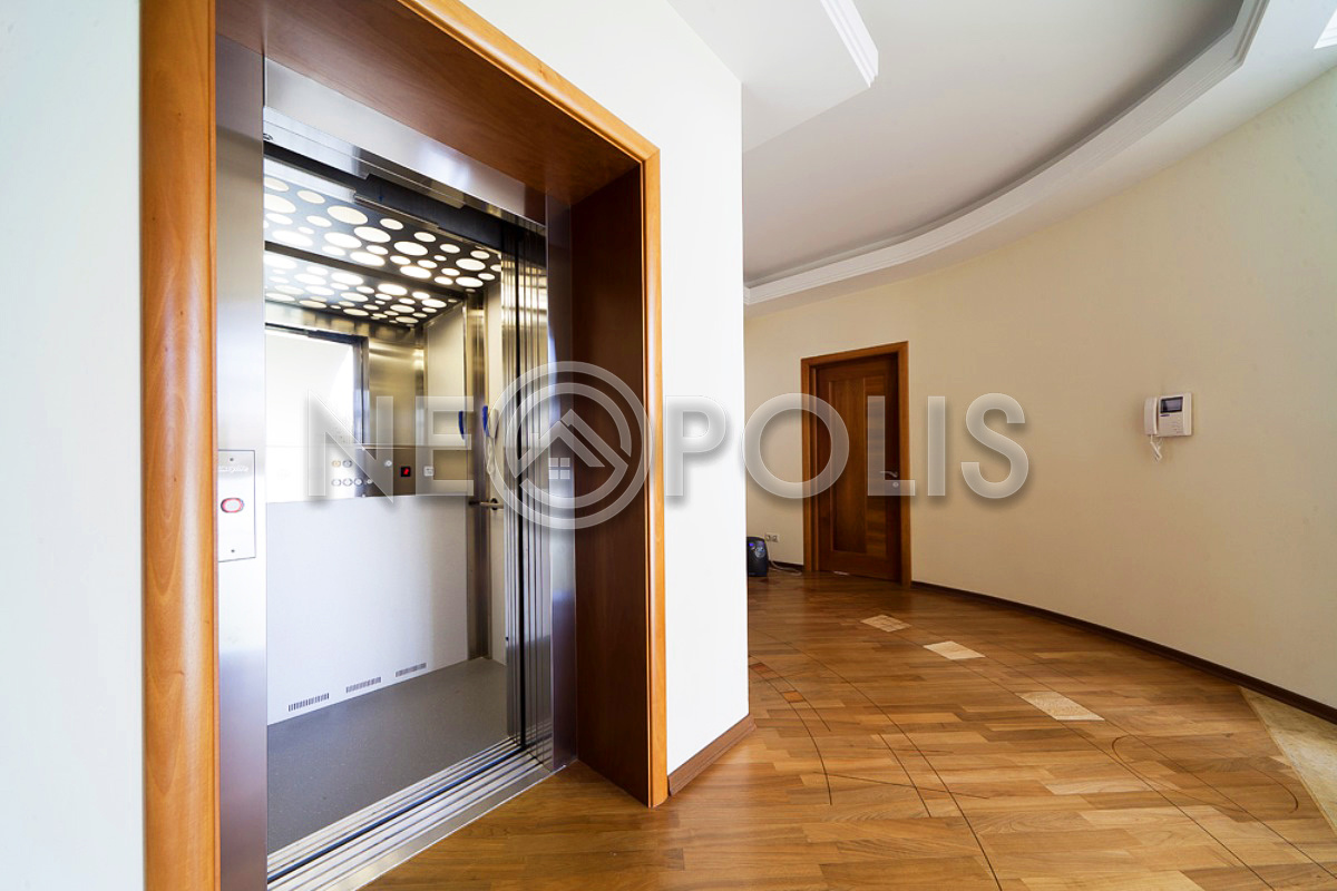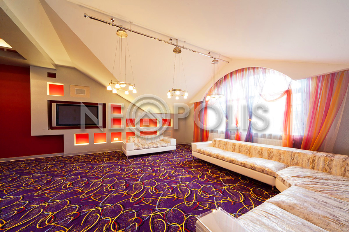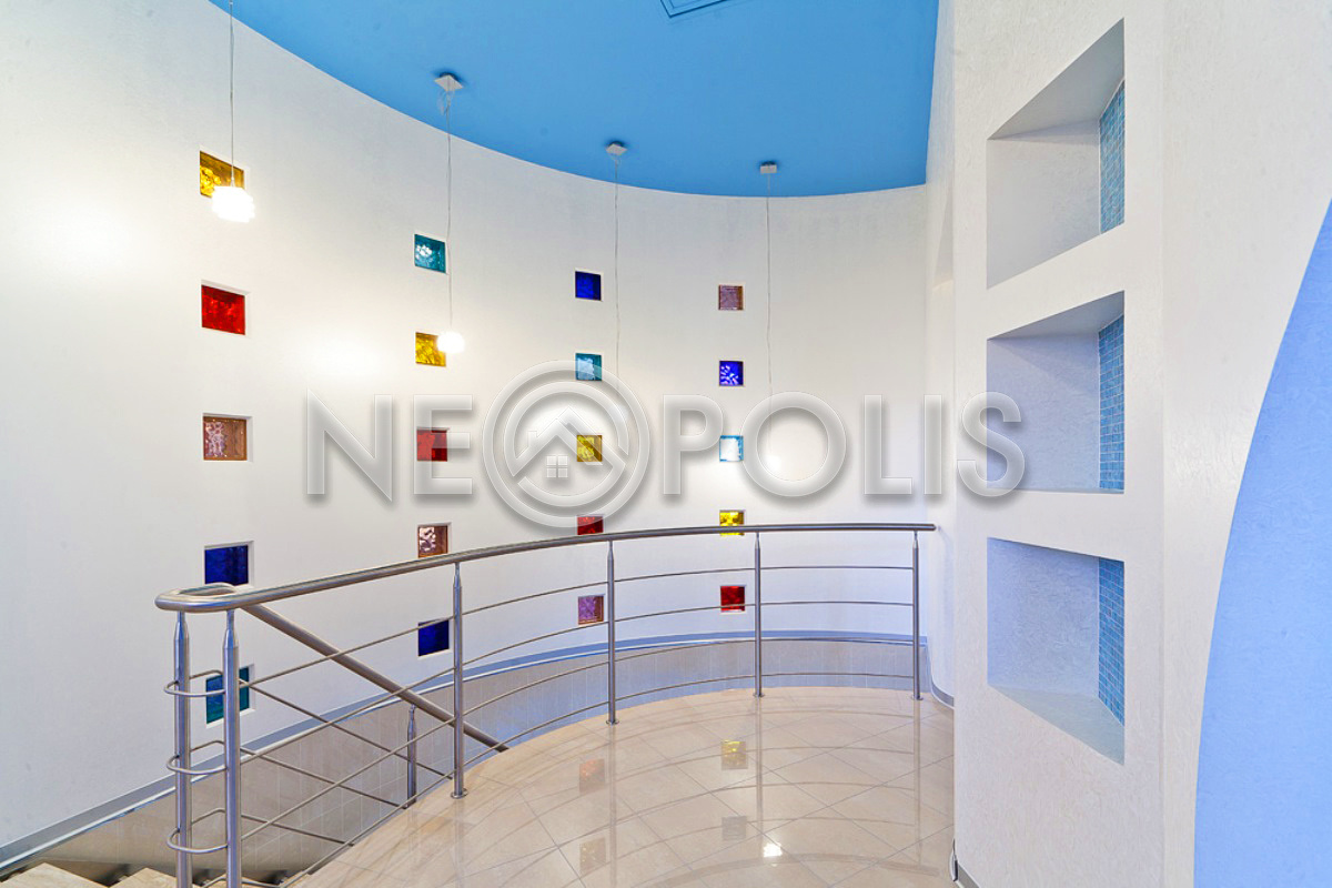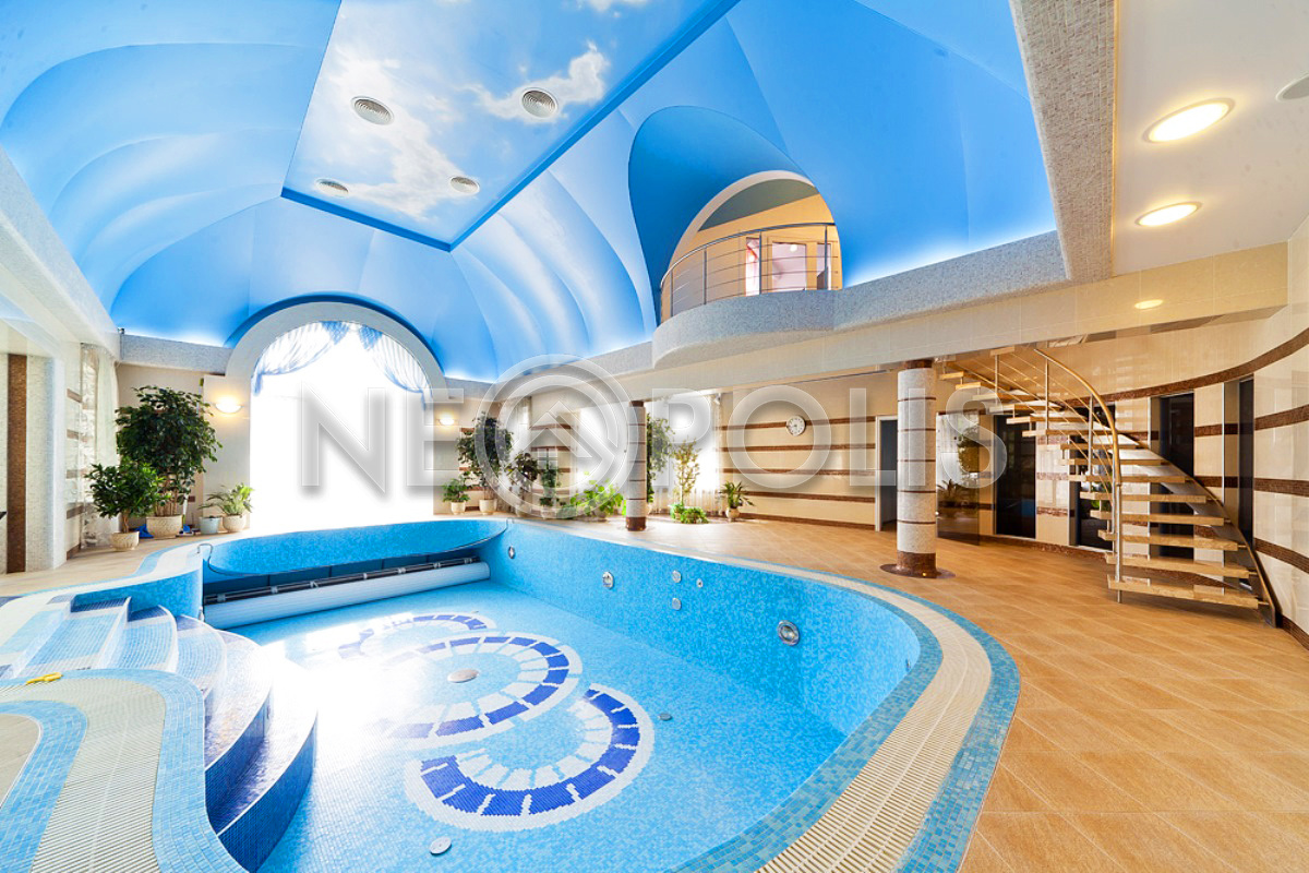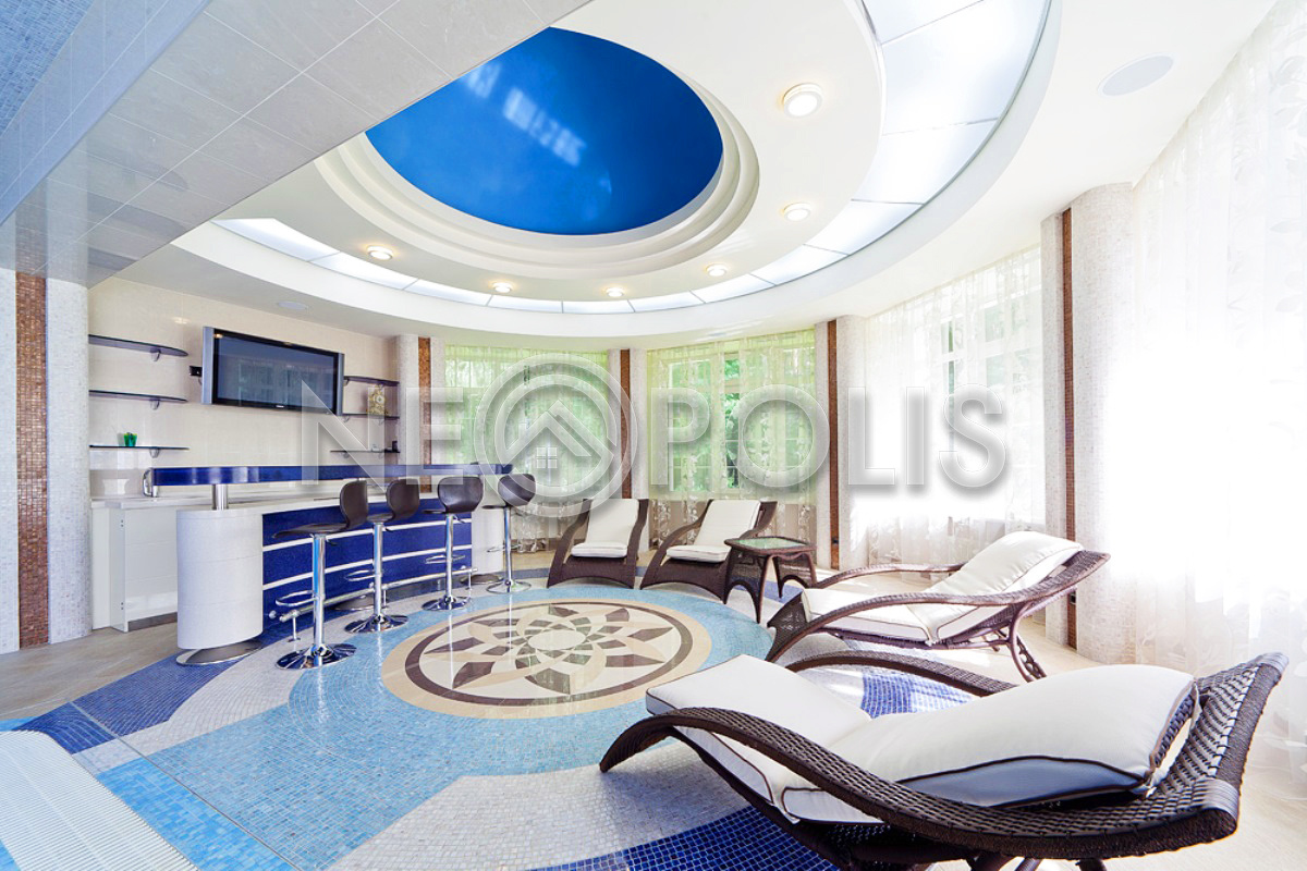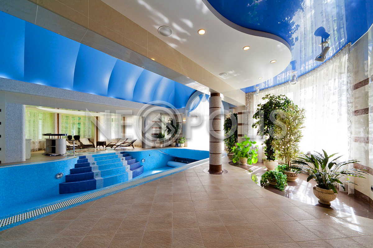 - 1 этаж:холл с парадной лестницей, лифтом, гардеробной и выходом в сад, кухня-столовая, каминный зал, гостиная, кабинет, бильярдная с выходом в сад, SPA зона: хамам, финская сауна, раздевалка, санузел с душевыми; постирочная, бойлерная, гараж на 3 авто с квартирой для персонала на втором этаже (с отдельным входом).