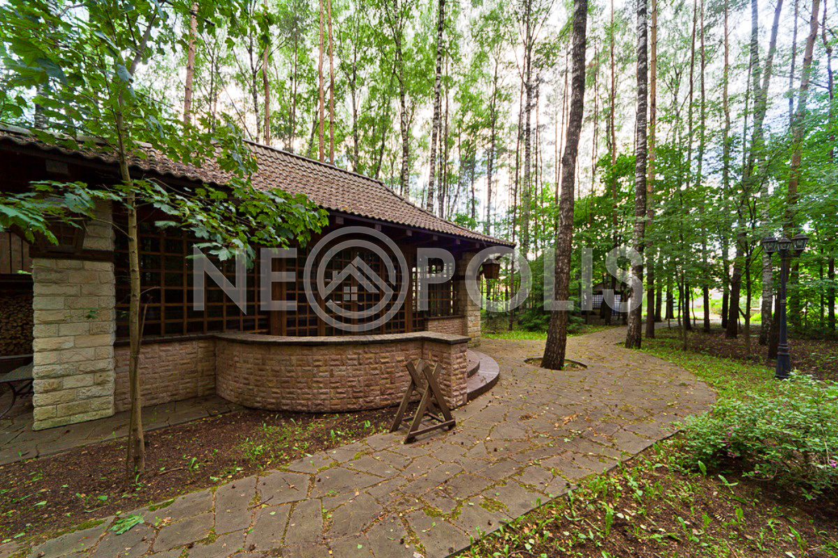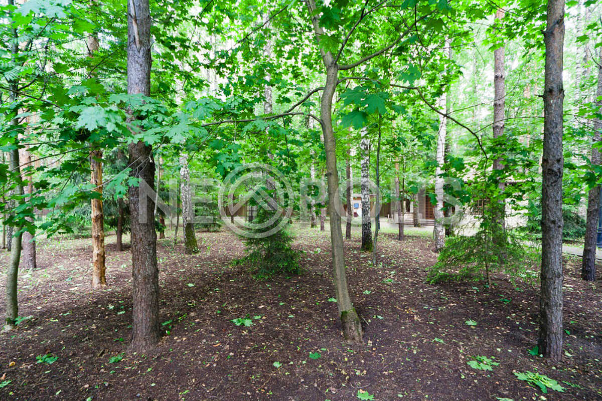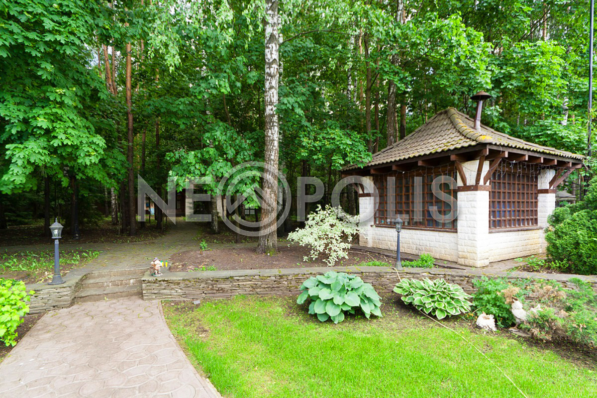 Участок лесной, представляет собой ухоженный лесопарк, сделан живописный ландшафтный дизайн, по периметру живая изгородь, вековые сосны, голубые ели, лиственные деревья, высажены туи, декоративные ели, можжевельники разных видов, вишня, декоративные кустарники, большое количество роз и других цветущих растений, выполнен красивый дизайн с частичным сохранением природного ландшафта, дорожки, освещение, авто полив, сделан дренаж и гидроизоляция по всему периметру дома.
