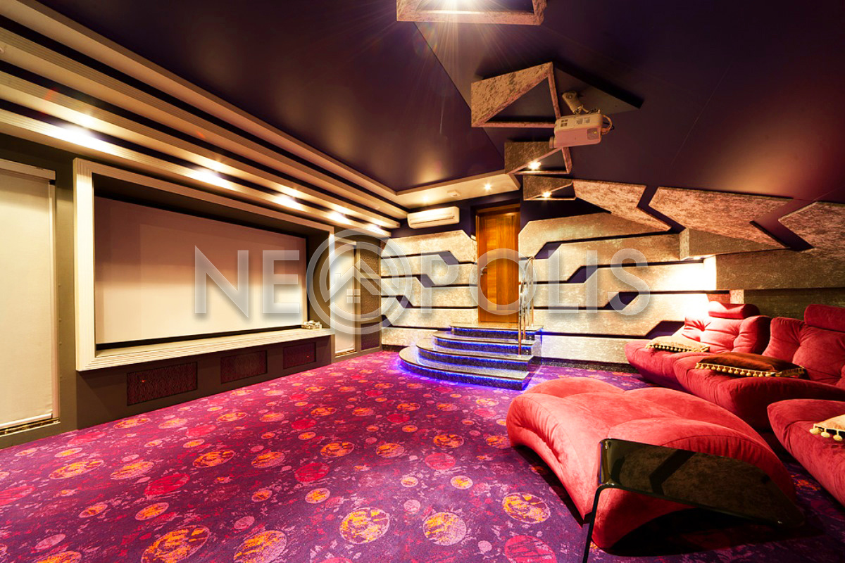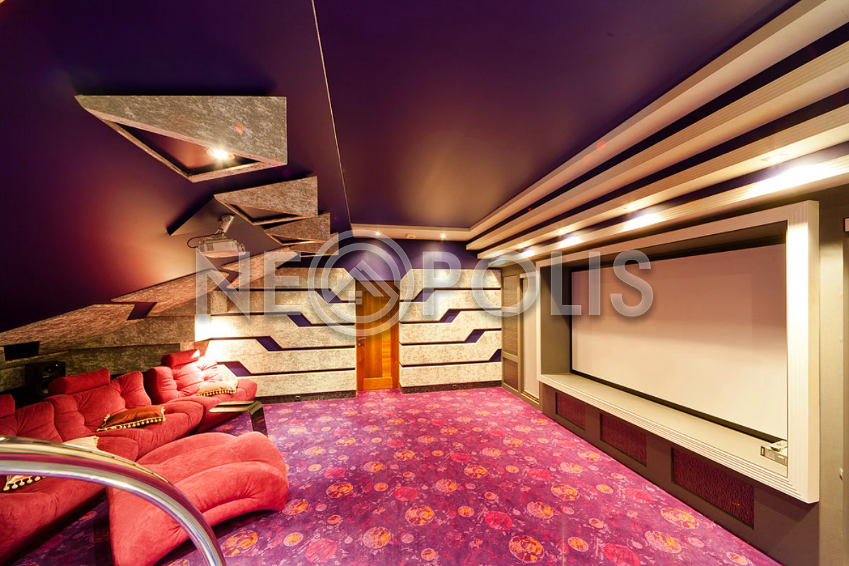 - 2 этаж:холл, мастер-спальня с гардеробной, ванной комнатой с джакузи; две спальни с ванными комнатами, зона домашнего кинотеатра, танцевальный зал с выходом на балкон и барной зоне, тренажерный зал, спуск к SPA зоне, санузел с душевой.
