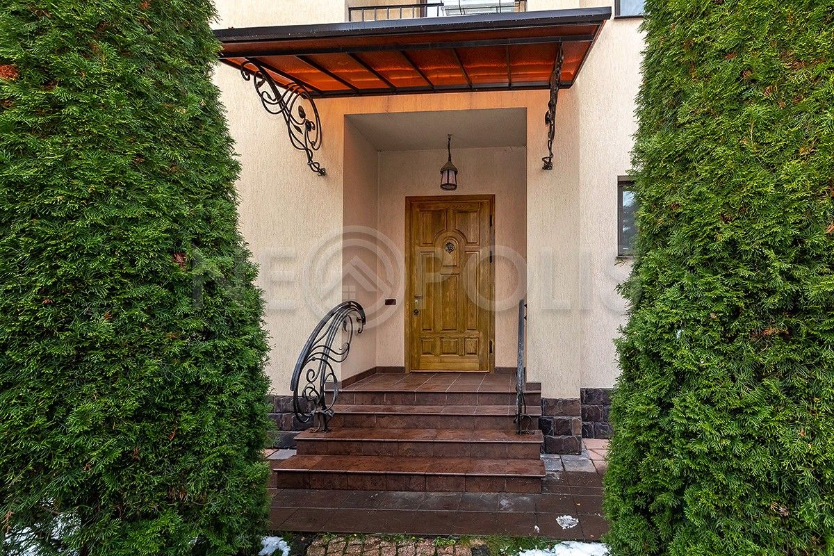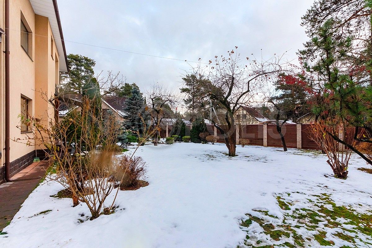 Ровный участок правильной формы, окруженный кирпичным высоким забором, установлены автоматические ворота, высажены кустарники, декоративные и плодовые деревья, обустроены пешеходные дорожки. Установлена дренажная система и система автоматического полива марки Hunter, организовано полноценное освещение.