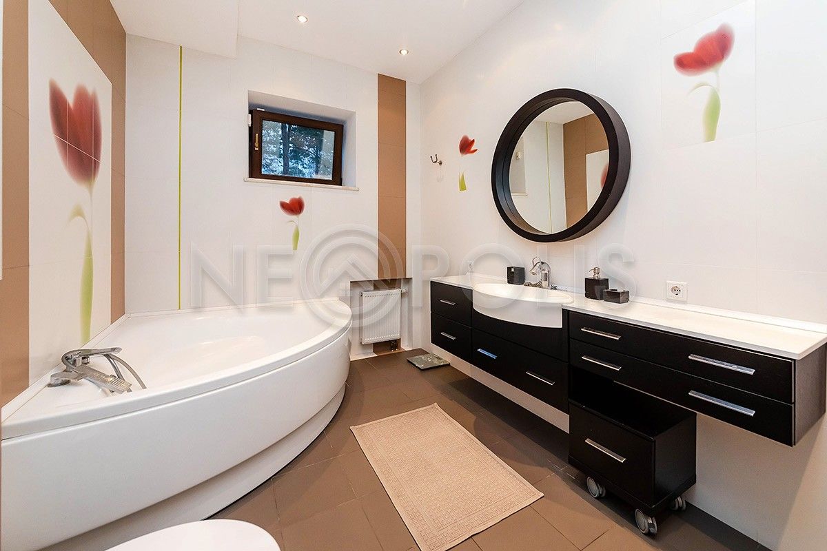 Объект расположен в комфортном для проживания поселке, на благоустроенном участке с видом на лес и ландшафтным дизайном. Полностью готов к круглогодичному проживанию. Отделка выполнена в классическом стиле из дорогих натуральных материалов.